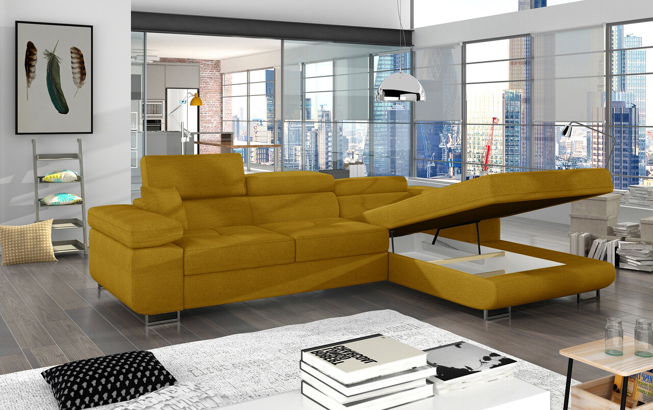 Coltar extensibil dreapta 4 locuri ELTAP, Armd-51, Armando, 289x203x85 cm, lemn/poliester, galben