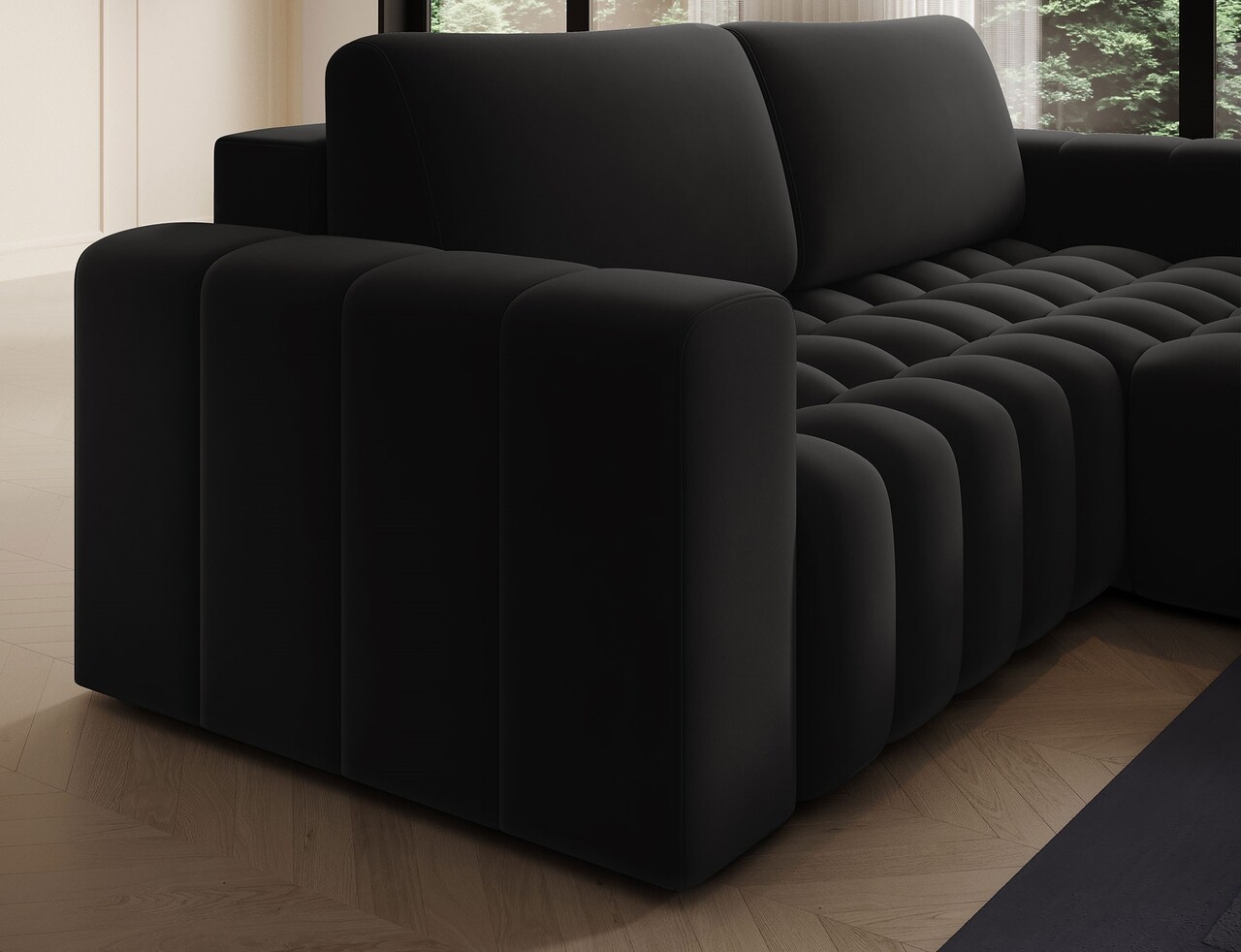 Coltar extensibil dreapta 4 locuri ELTAP, Bon-33, Bonett, 250x175x92 cm, lemn/poliester, negru