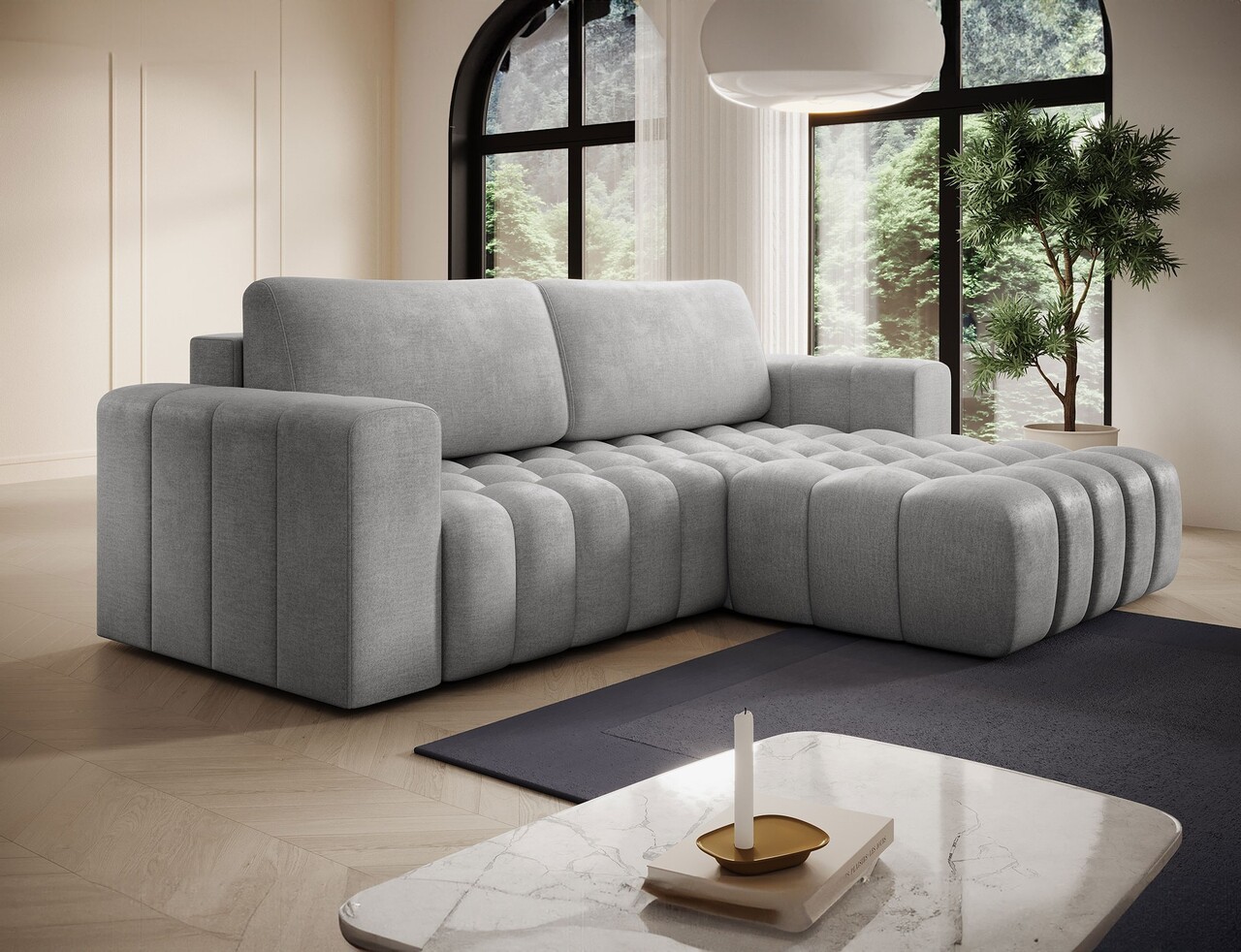 Coltar extensibil dreapta 4 locuri ELTAP, Bon-38, Bonett, 250x175x92 cm, lemn/poliester, gri deschis