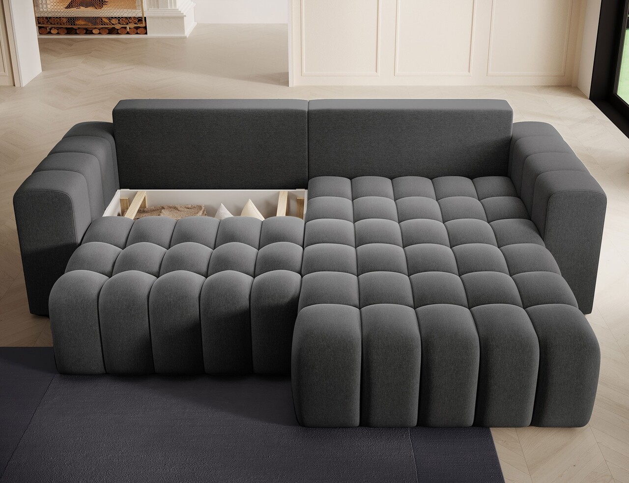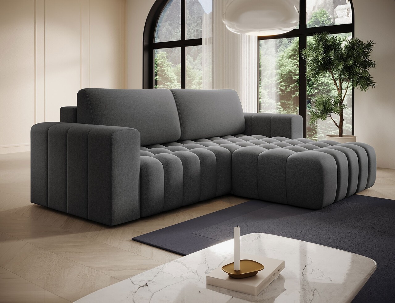 Coltar extensibil dreapta 4 locuri ELTAP, Bon-44, Bonett, 250x175x92 cm, lemn/poliester, gri