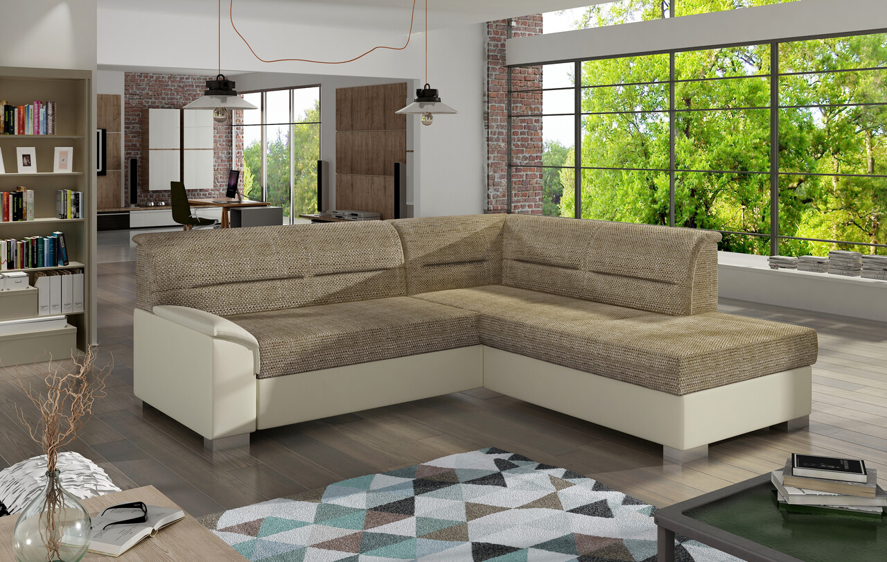 Coltar extensibil dreapta 4 locuri ELTAP, BR14, Bergen, 247x214x83 cm, lemn/poliester, bej inchis/bej deschis