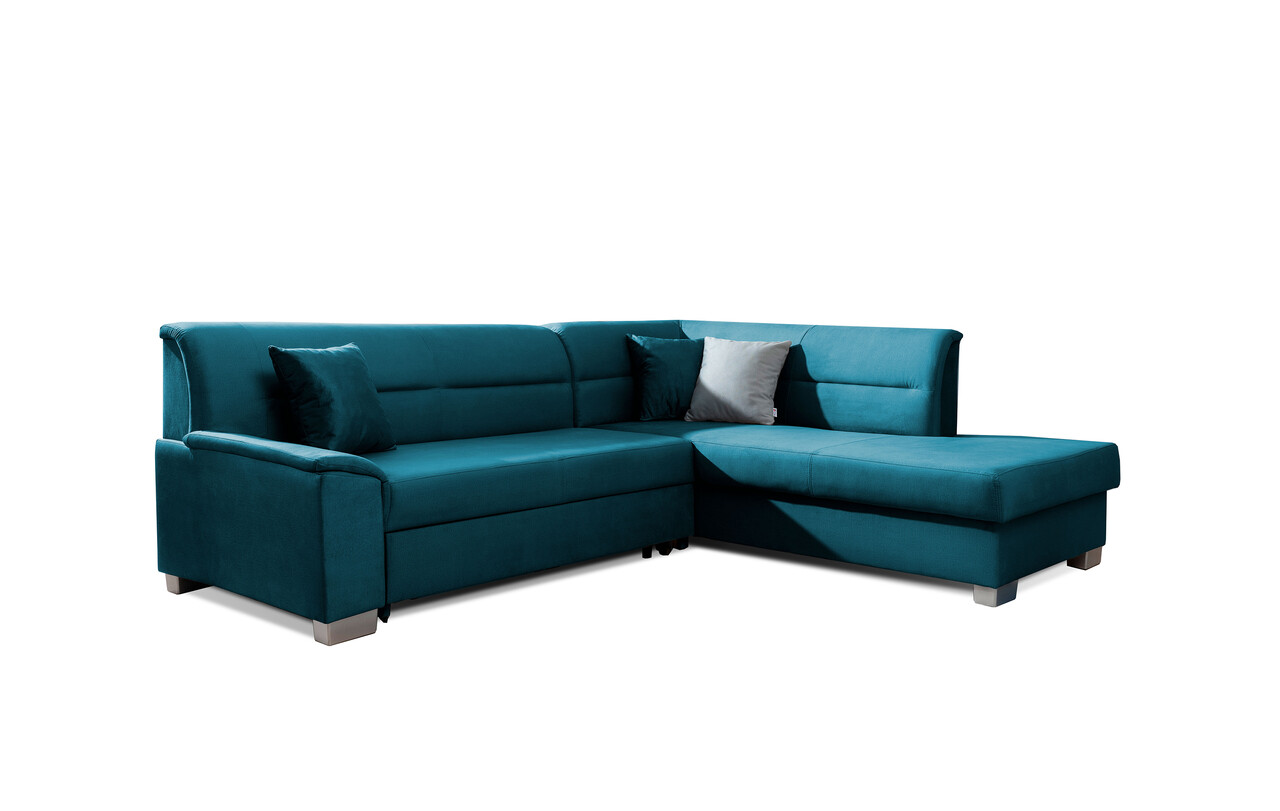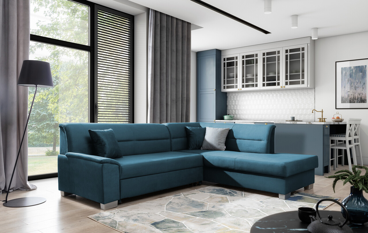 Coltar extensibil dreapta 4 locuri ELTAP, BR47, Bergen, 247x214x83 cm, lemn/poliester, albastru
