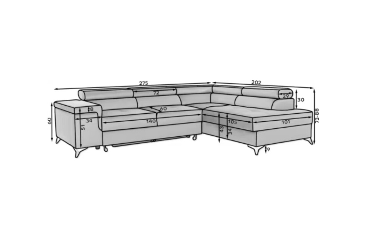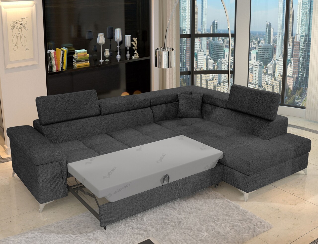 Coltar extensibil dreapta 4 locuri ELTAP, ERI-03, Eridano, 275x202x88 cm, lemn/poliester, gri antracit