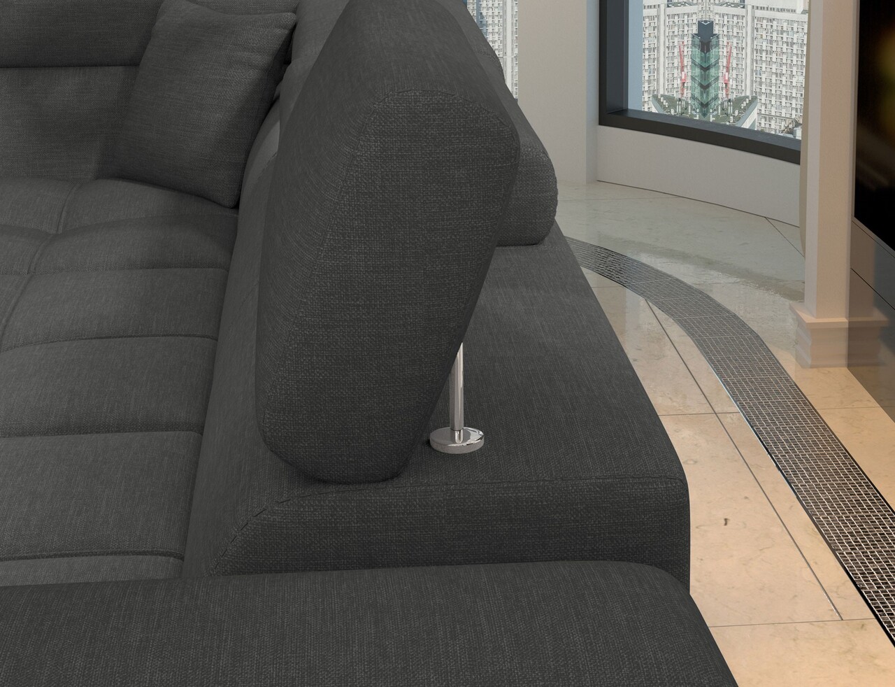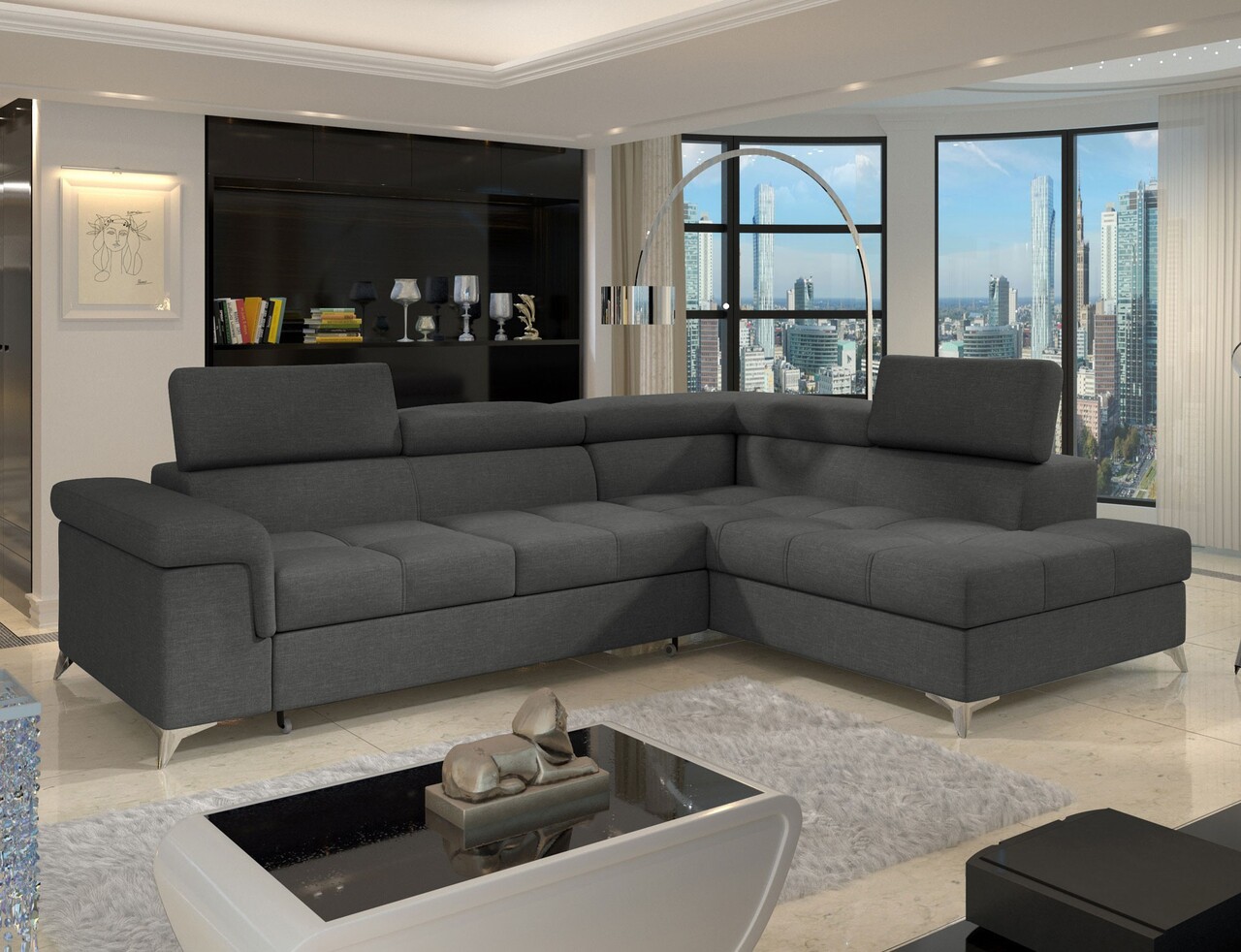 Coltar extensibil dreapta 4 locuri ELTAP, ERI-13, Eridano, 275x202x88 cm, lemn/poliester, gri inchis