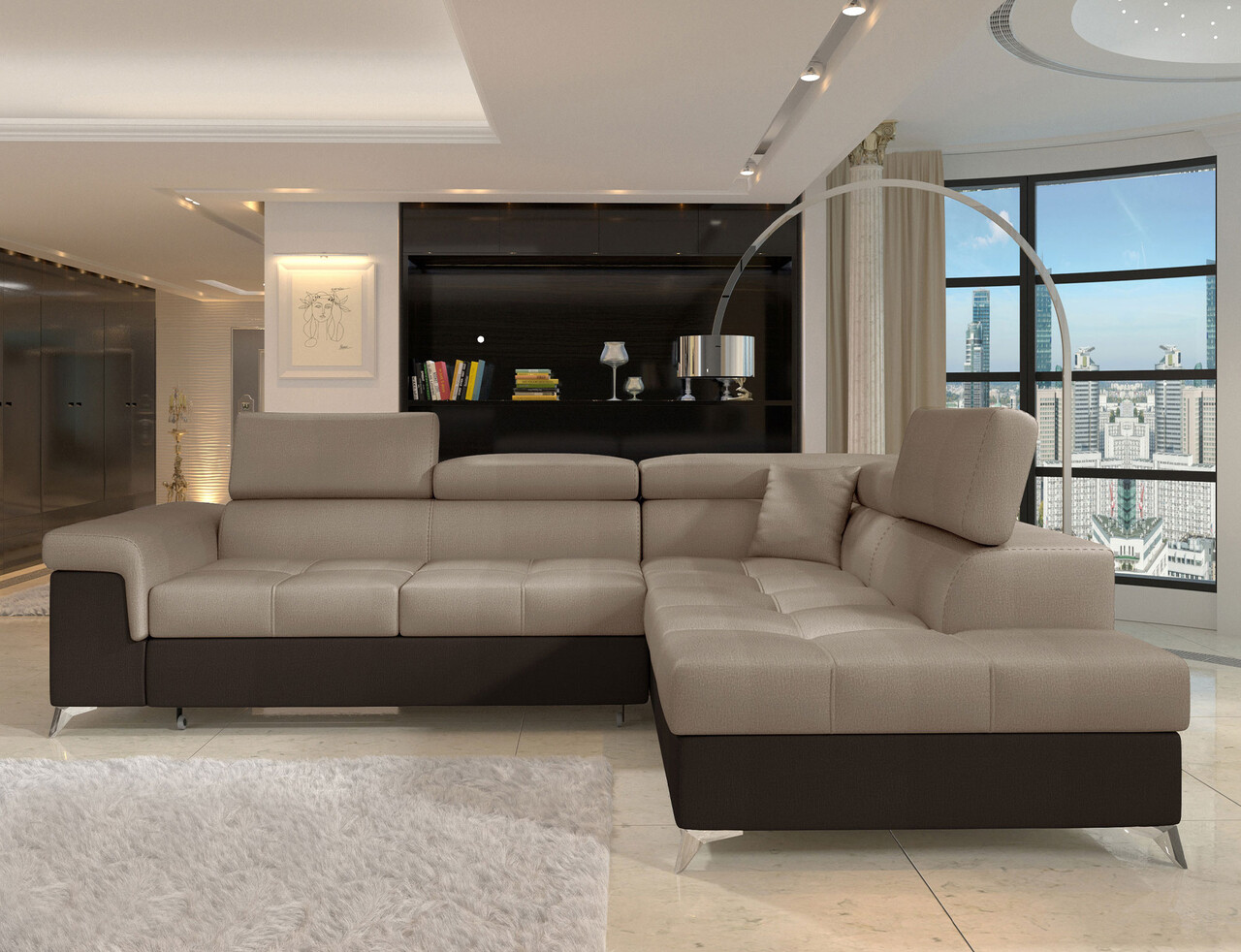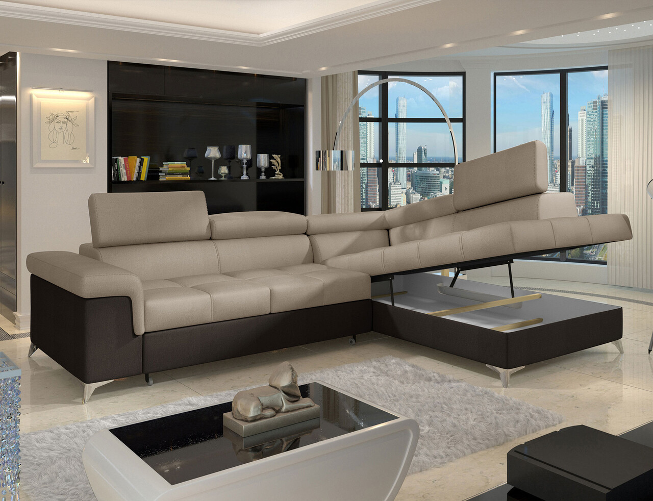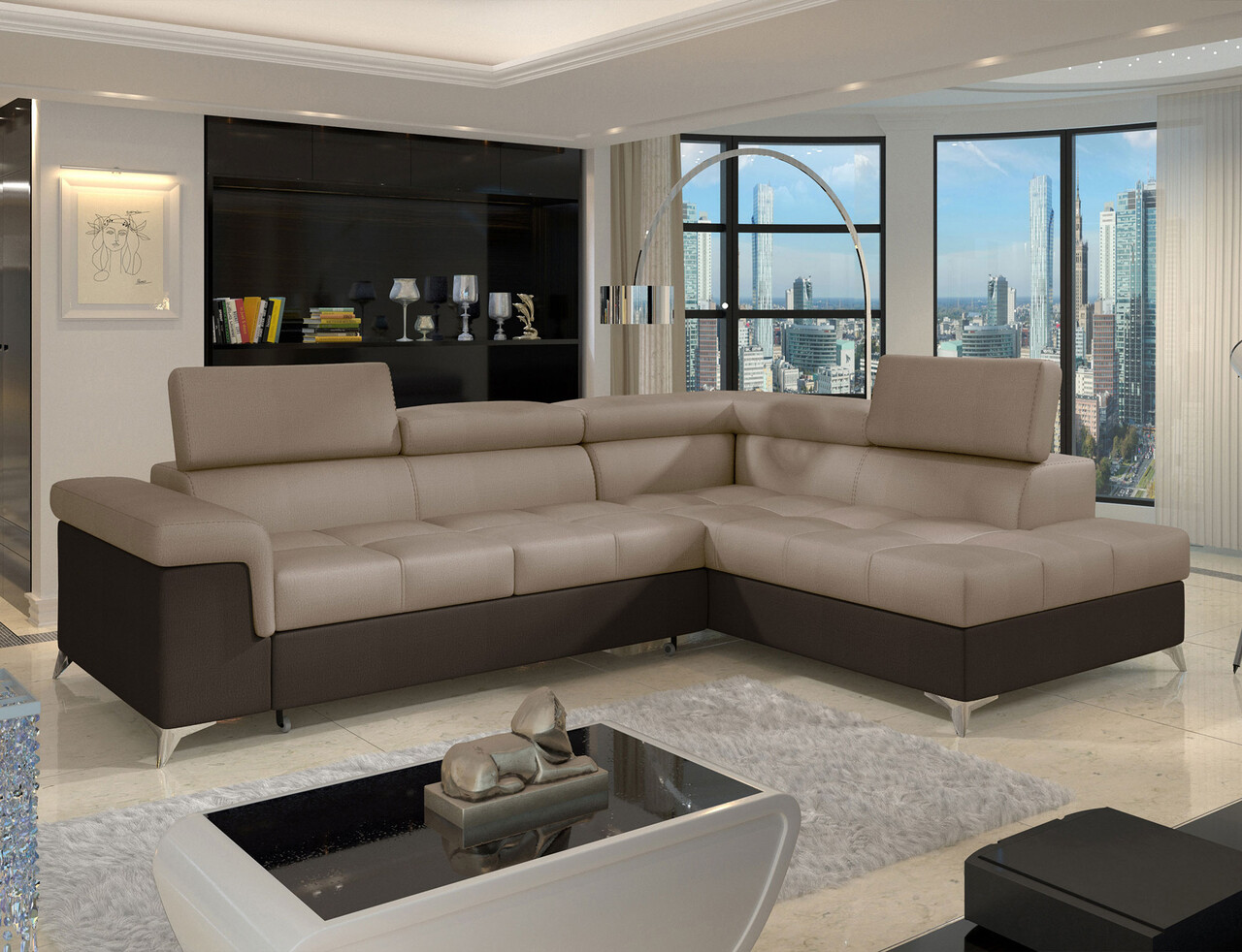 Coltar extensibil dreapta 4 locuri ELTAP, ERI-21, Eridano, 275x202x88 cm, lemn/poliester, maro deschis/maro inchis
