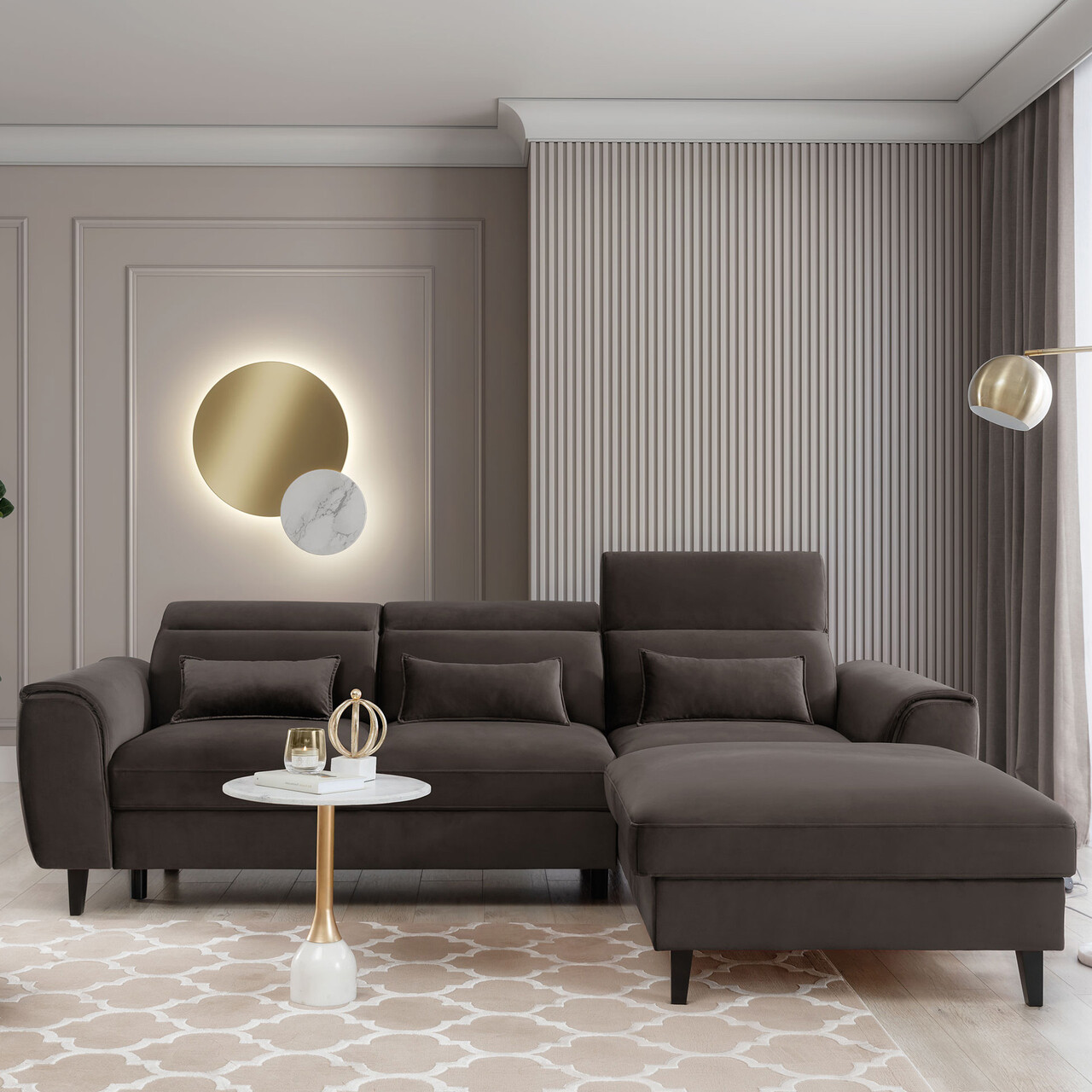 Coltar extensibil dreapta 4 locuri ELTAP, Foble, 267x196x100 cm, lemn/poliester, maro inchis