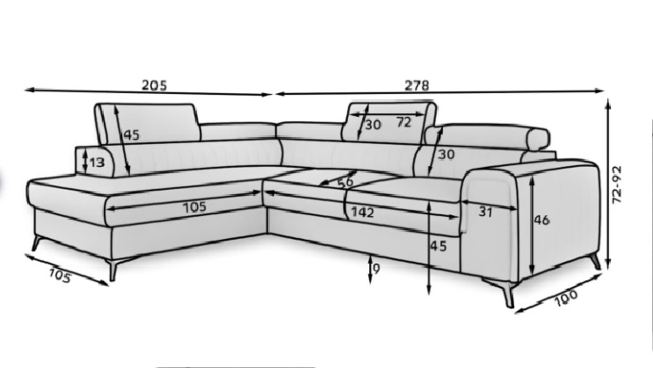 Construit cu un sistem de arcuri ondulate tip B, spuma T30 si spuma HR, coltarul asigura un nivel superior de confort, atat in utilizarea de zi cu zi, cat si pe timpul noptii. Datorita mecanismului de extensie tip delfin, acesta se transforma cu usurinta intr-un pat spatios, ideal pentru un somn odihnitor. In plus, dispune de o lada generoasa pentru depozitarea asternuturilor, maximizand astfel functionalitatea.