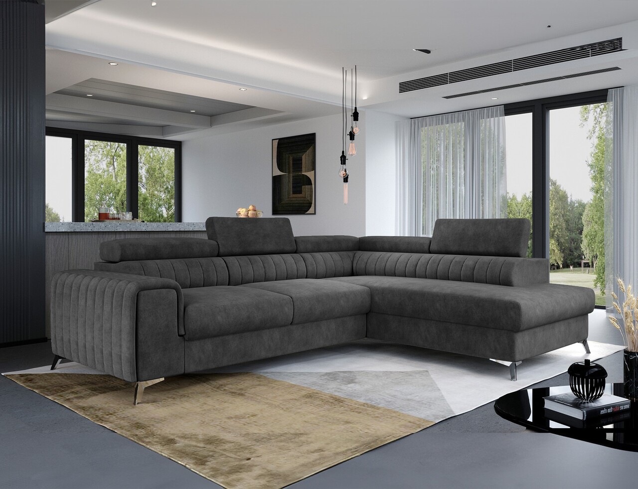 Coltar extensibil dreapta 4 locuri, ELTAP, Lau-29, Laurence, 278x205x92 cm, lemn/poliester, graphite deschis