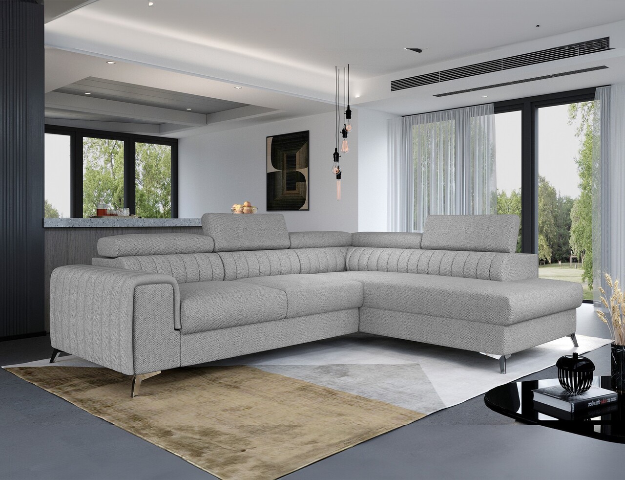Coltar extensibil dreapta 4 locuri, ELTAP, Lau-31, Laurence, 278x205x92 cm, lemn/poliester, gri deschis
