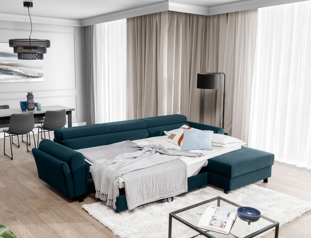 Coltar extensibil dreapta 4 locuri ELTAP, Mari-31, Mariall, 288x200x92 cm, lemn/poliester, albastru inchis