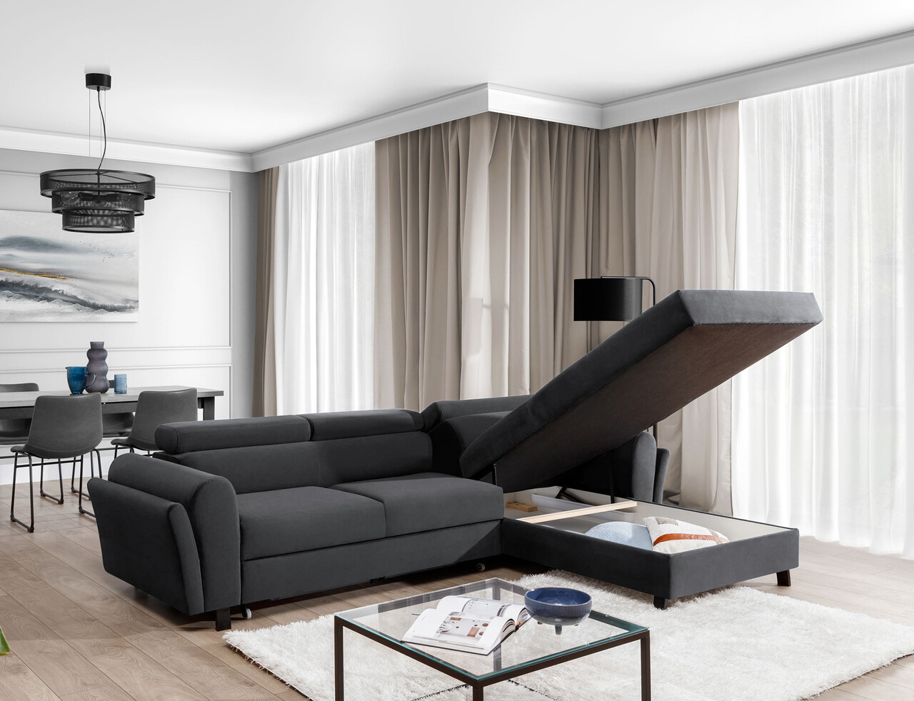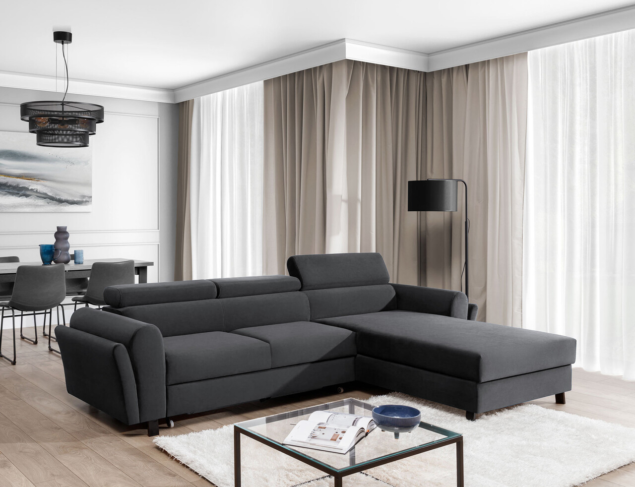 Coltar extensibil dreapta 4 locuri ELTAP, Mari-32, Mariall, 288x200x92 cm, lemn/poliester, gri inchis