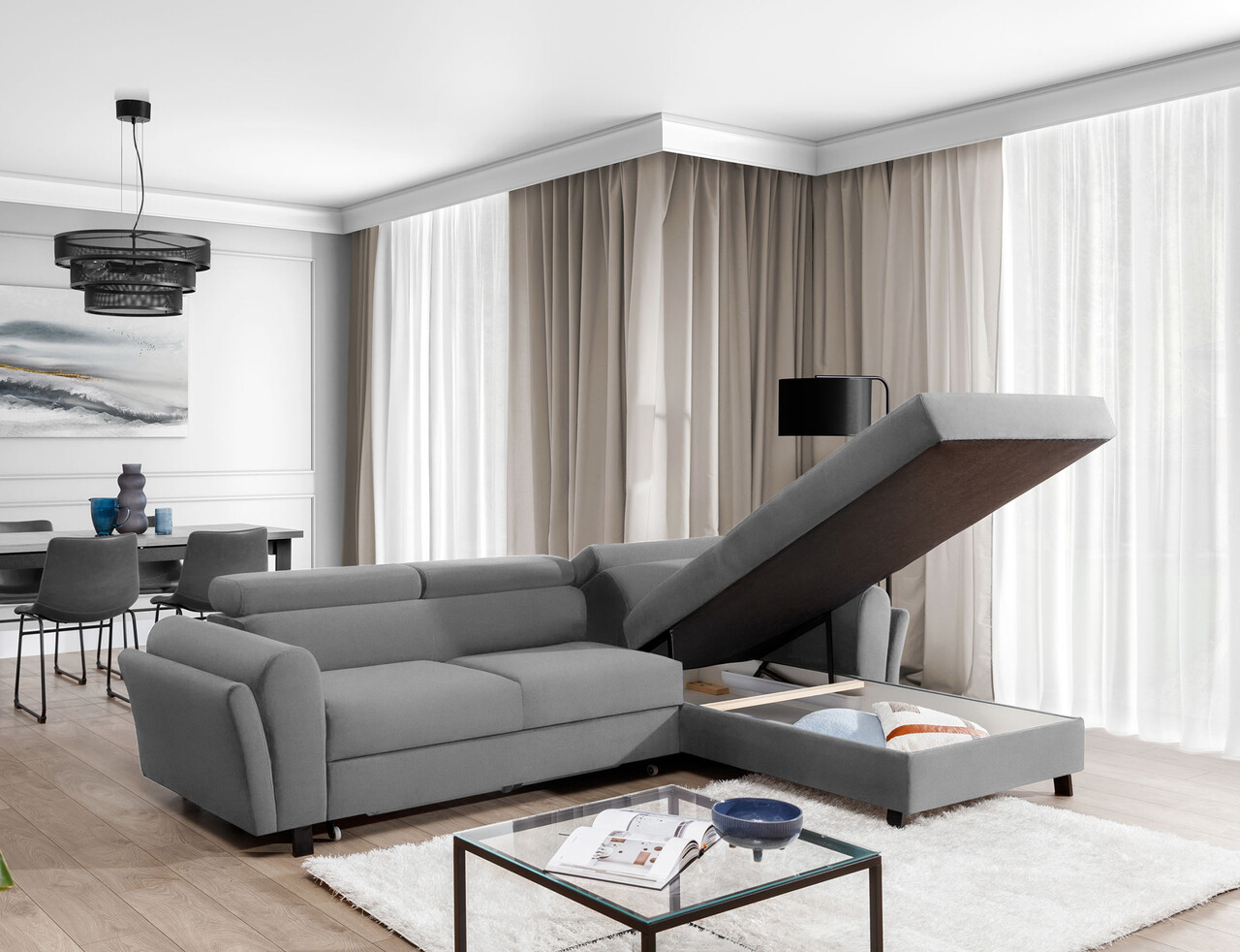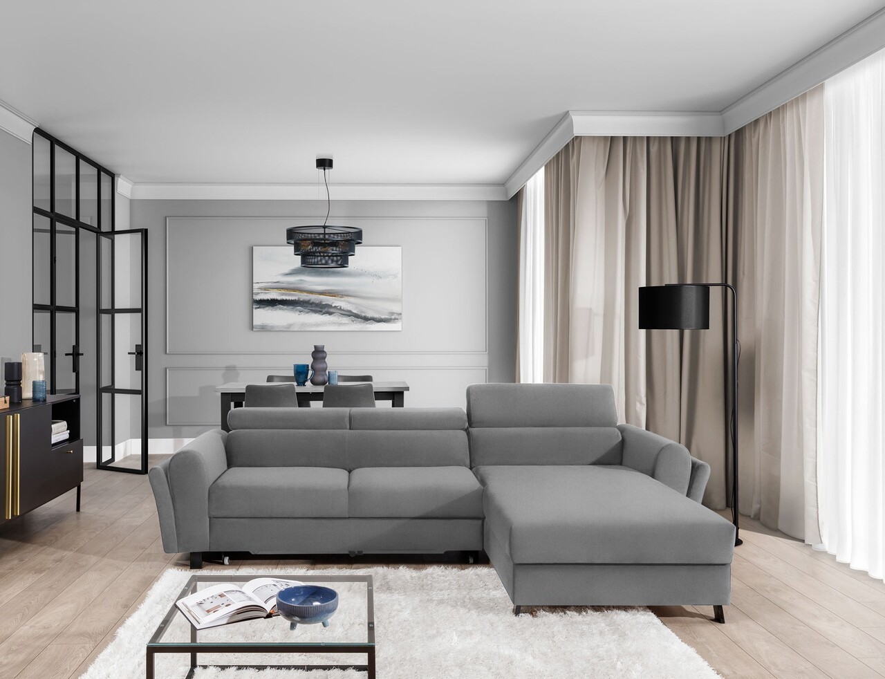 Coltar extensibil dreapta 4 locuri ELTAP, Mari-38, Mariall, 288x200x92 cm, lemn/poliester, gri