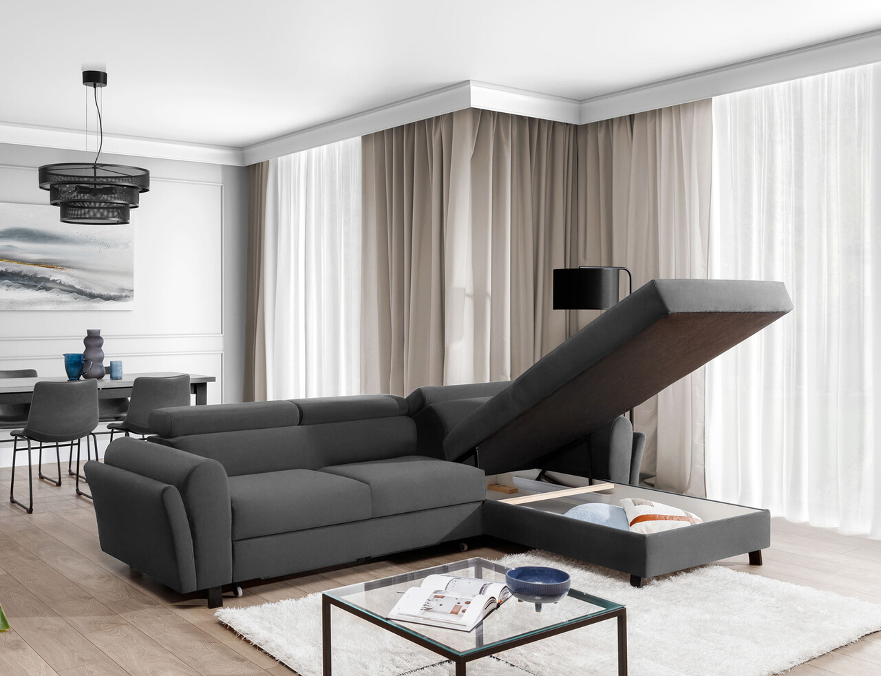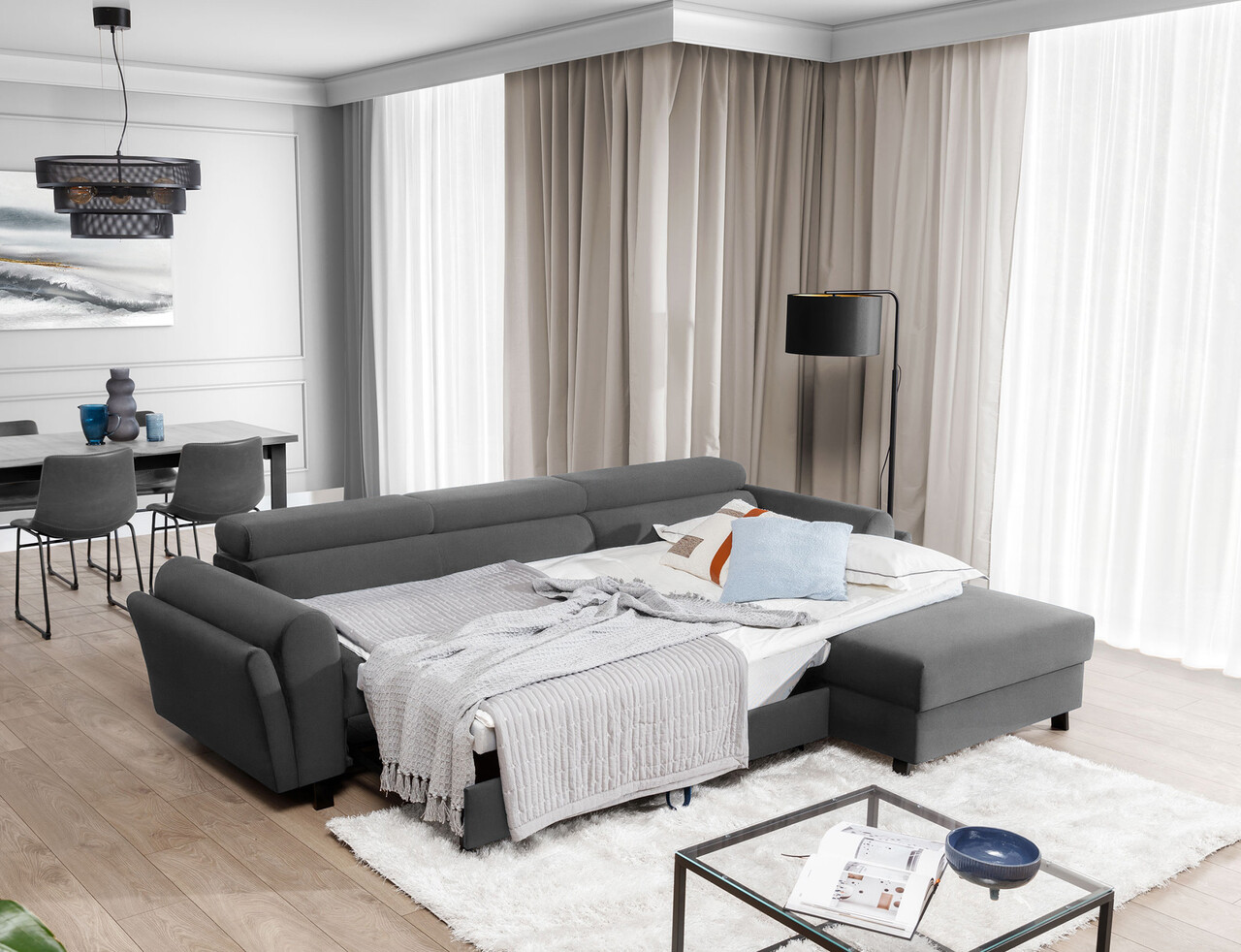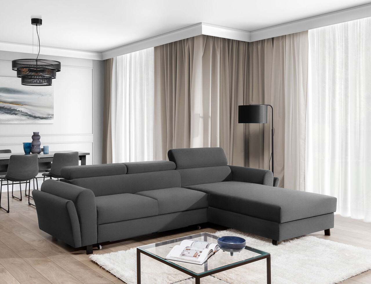 Coltar extensibil dreapta 4 locuri ELTAP, Mari-39, Mariall, 288x200x92 cm, lemn/poliester, gri inchis