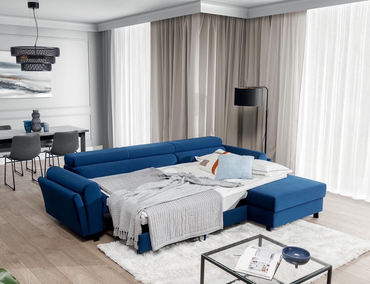 Coltar extensibil dreapta 4 locuri ELTAP, Mari-70, Mariall, 288x200x92 cm, lemn/poliester, albastru