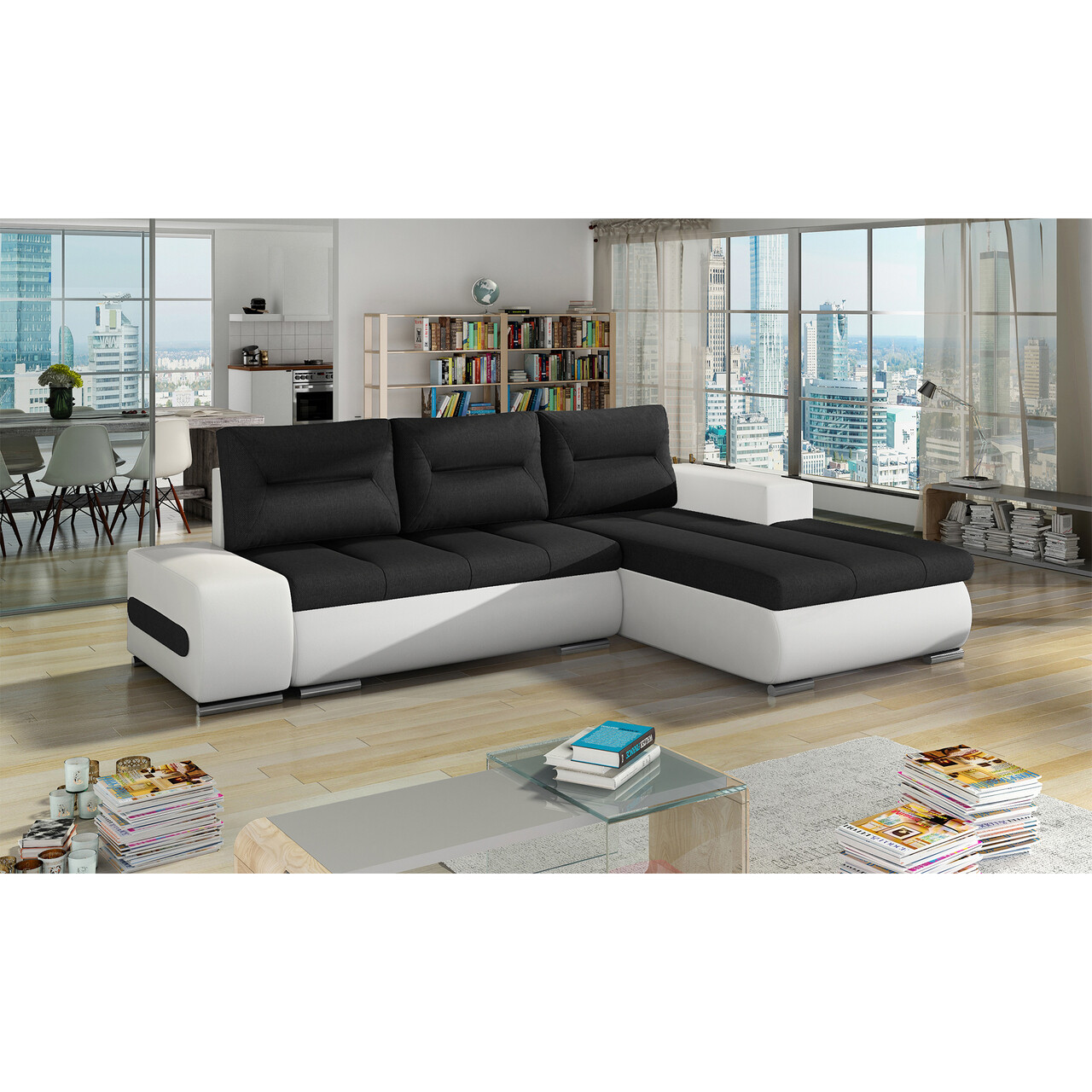 Coltar extensibil dreapta 4 locuri ELTAP, Ov19, Ottavio, 275x180x85 cm, lemn/poliester, negru/alb