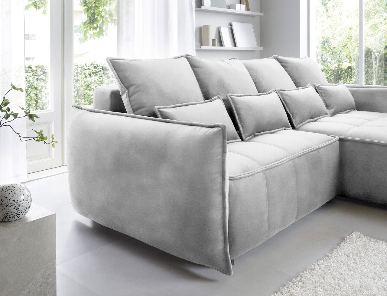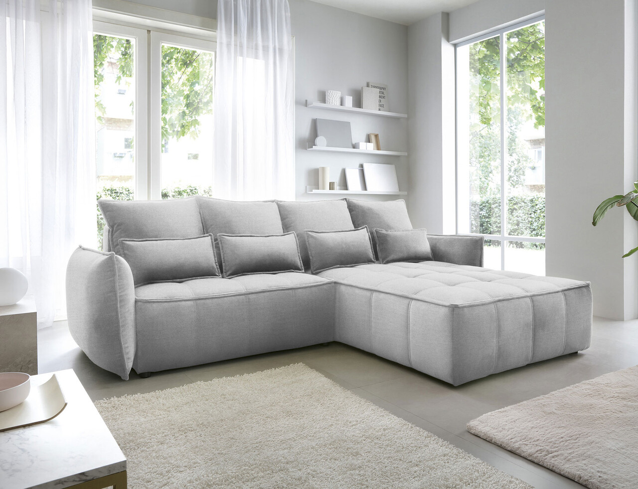 Coltar extensibil dreapta 4 locuri ELTAP, RT-03NU, Campo, 265x196x88 cm, lemn/poliester, gri deschis