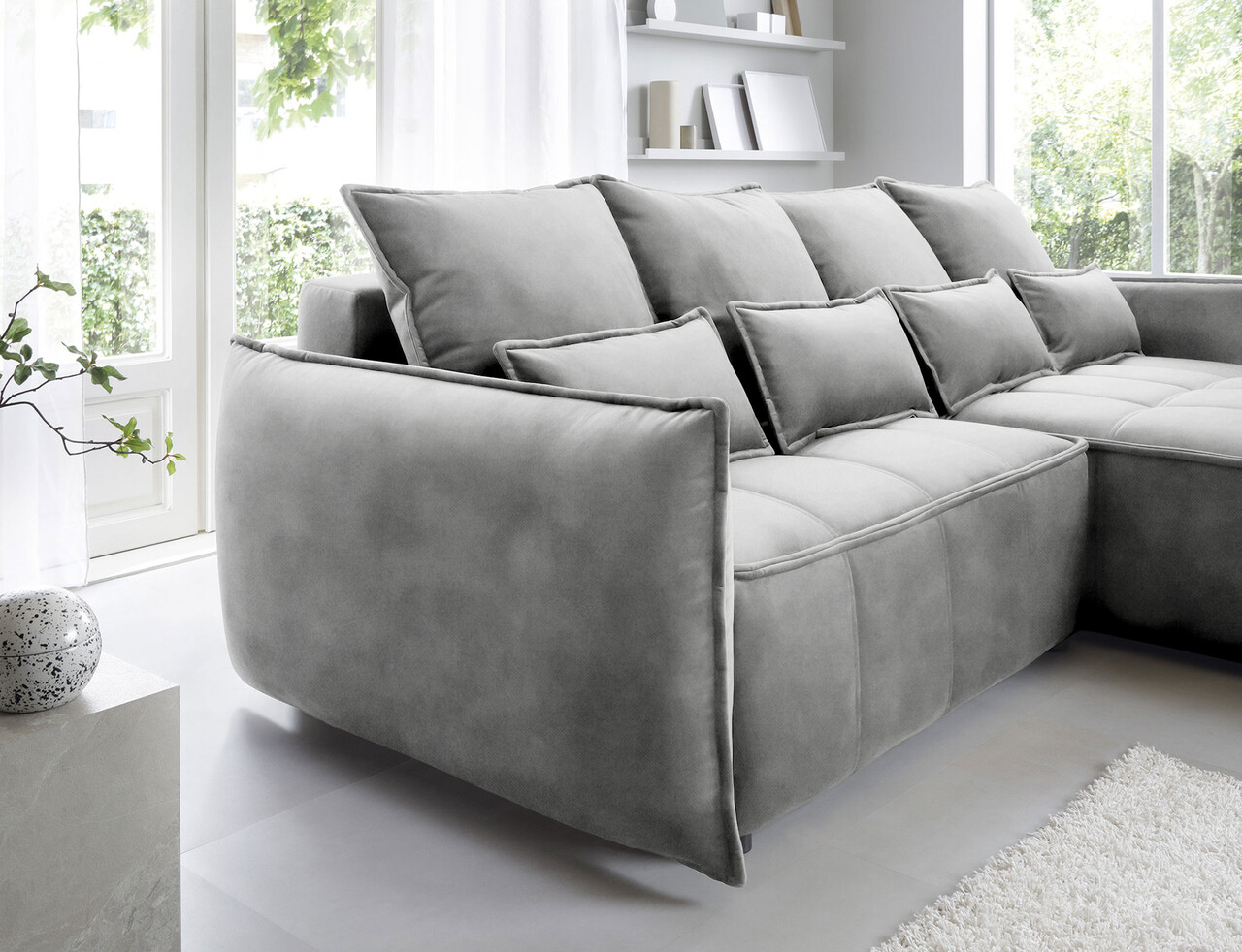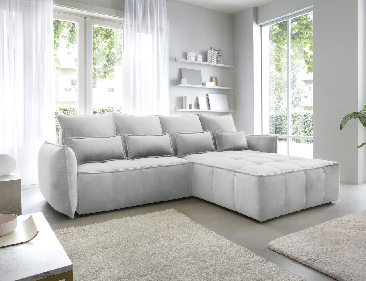 Coltar extensibil dreapta 4 locuri ELTAP, RT-03REL, Campo, 265x196x88 cm, lemn/poliester, gri deschis