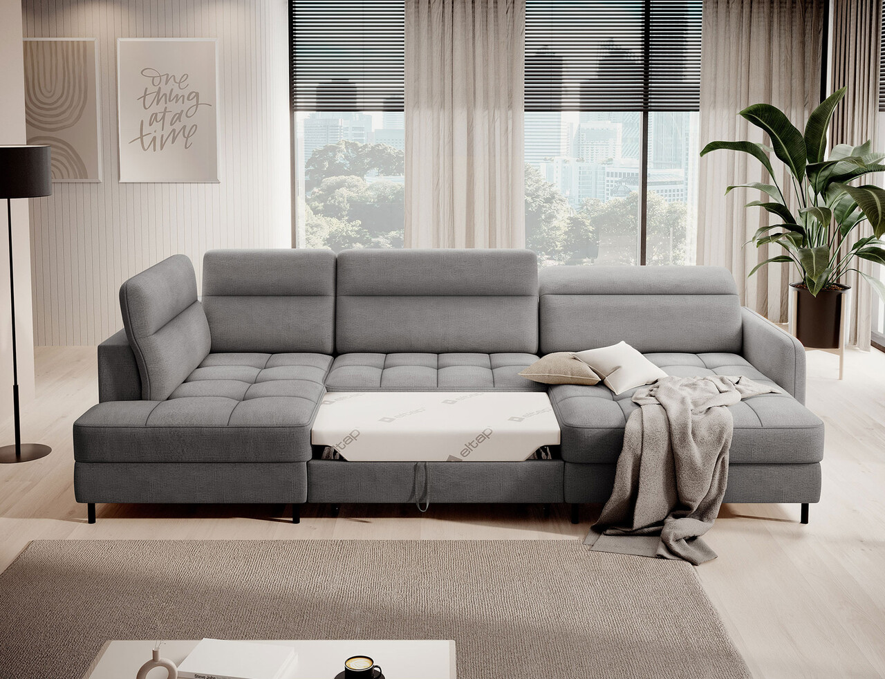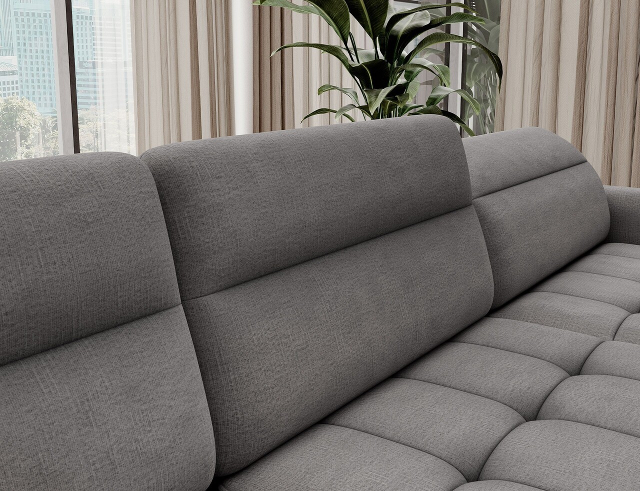 Coltar Berrto este o piesa de mobilier pentru living extrem de sofisticata, creata pentru a va oferi confort si functionalitate exceptionale. Acest coltar elegant combina designul modern cu utilizarea excelenta a componentelor de inalta calitate. Este fabricat folosind arcuri cu valuri de tip B care, impreuna cu spuma HR + T2130, extrem de elastica, creeaza o suprafata a sezutului cu un confort de neegalat. Acest lucru face sezutul moale, flexibil si se adapteaza perfect formei corpului, oferind nu numai relaxare, ci si usurare pentru muschi. Utilizarea curelelor de tapiterie si a spumei T2130 garanteaza durabilitatea si rezistenta la deformare. Nu trebuie sa va faceti griji cu privire la cutele inestetice deoarece acest coltar isi va pastra aspectul original pentru multi ani. Il puteti transforma rapid si usor intr-un pat confortabil, asigurandu-va dumneavoastra si oaspetilor dumneavoastra un somn bun. Coltarul Berrto nu inseamna doar confort, ci si fiabilitate. Durabilitatea sa este impresionanta, atingand o capacitate maxima de 390 kg. Aceasta inseamna ca va puteti bucura de el multi ani fara sa va faceti griji cu privire la durabilitatea acestuia. Coltarul Berrto se distinge nu numai prin functionalitatea sa, ci si prin finisajul sau estetic. Picioarele din otel negru ii confera o senzatie moderna, iar designul elegant il face un element minunat al decorului camerei de zi. Este echipat cu un mecanism de extindere de tip Delfin, usor de utilizat, care va permite sa il transformati rapid intr-un pat confortabil. Este solutia perfecta atunci cand aveti nevoie de un loc de dormit pentru oaspeti. Coltarul Berrto este o piesa de mobilier care imbina luxul, confortul si functionalitatea. Manopera sa de inalta calitate si finisajul atent il vor face nu numai punctul de atractie al camerei de zi, ci si un loc unde sa va relaxati si sa petreceti timp cu prietenii si familia.