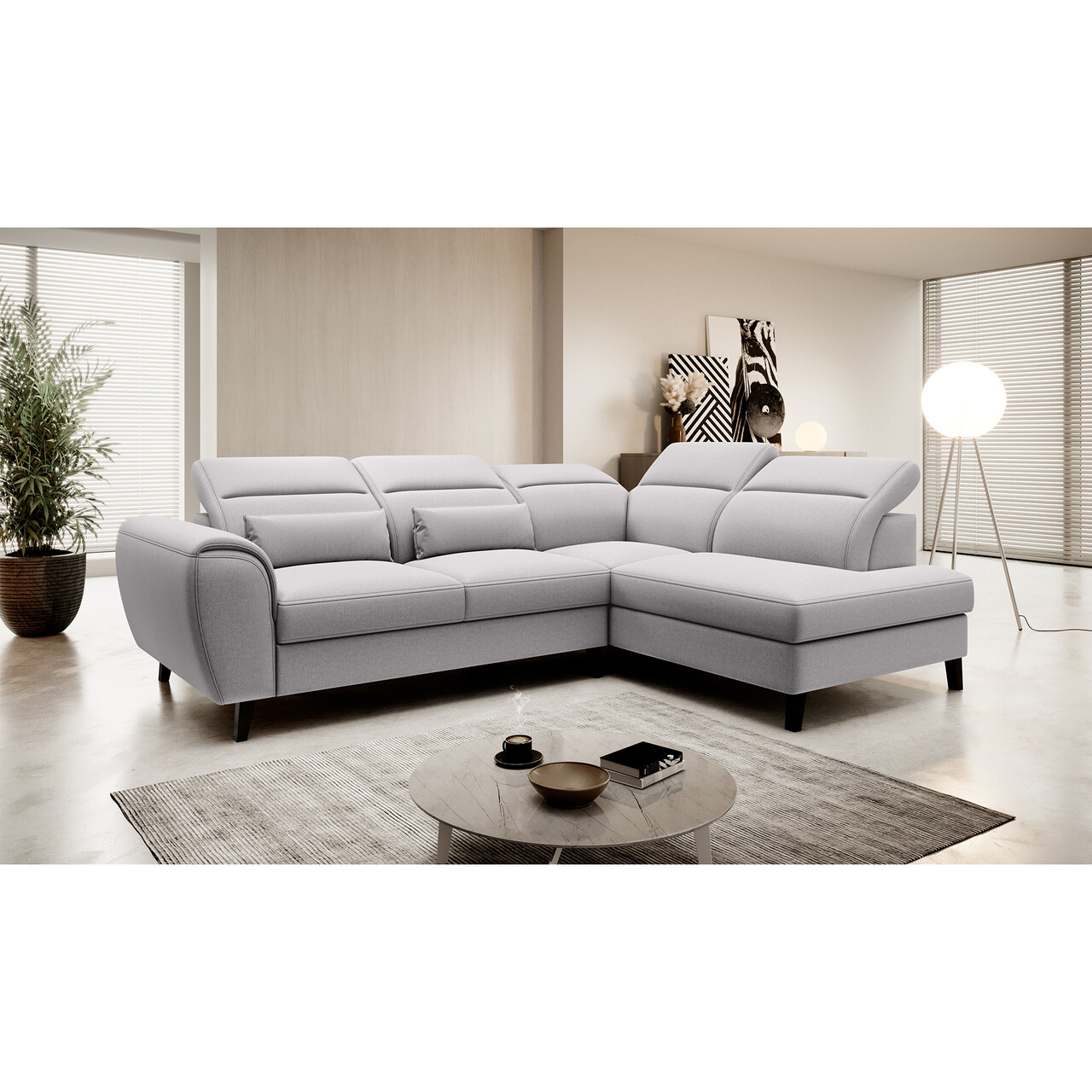 Coltar extensibil dreapta 4 locuri ELTAP, RT-04GO, Noble, 255x201x100 cm, lemn/poliester, gri deschis
