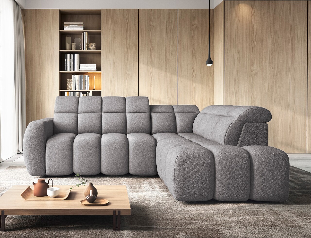 Coltar extensibil dreapta 4 locuri ELTAP, RT-04PAO, Falconn, 258x208x107 cm, lemn/poliester, gri inchis