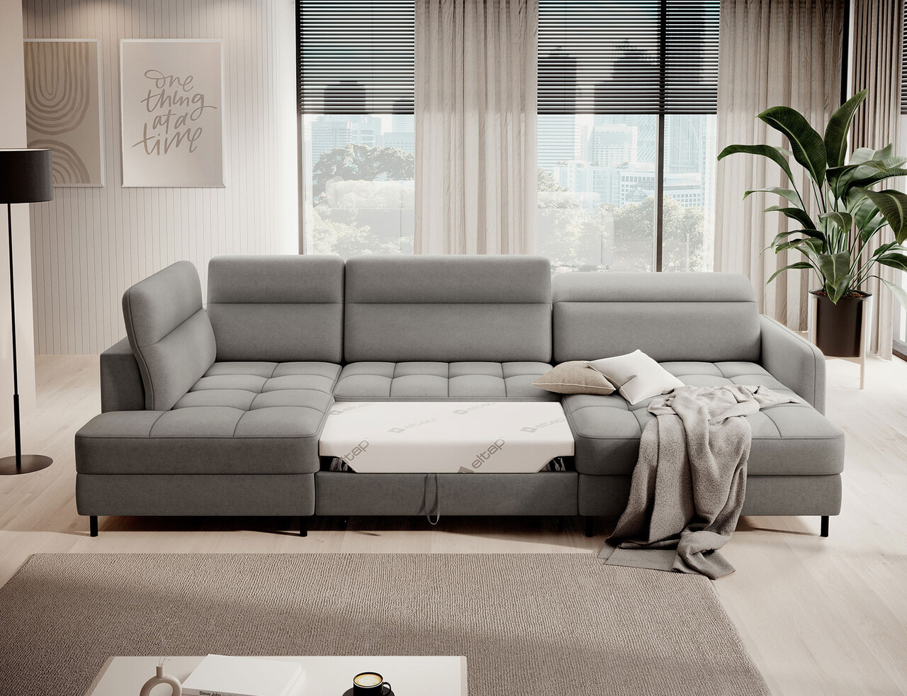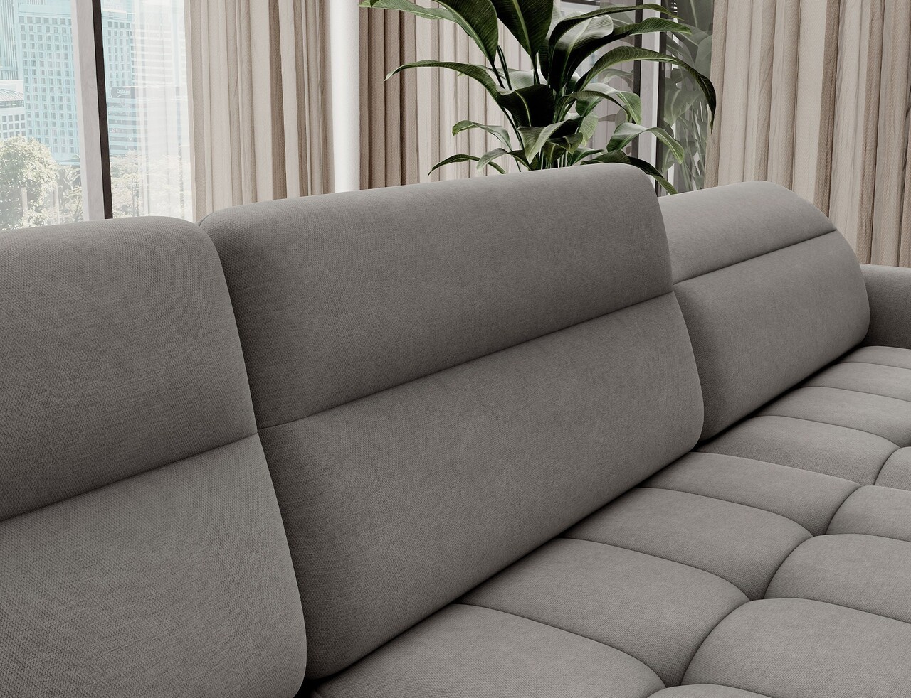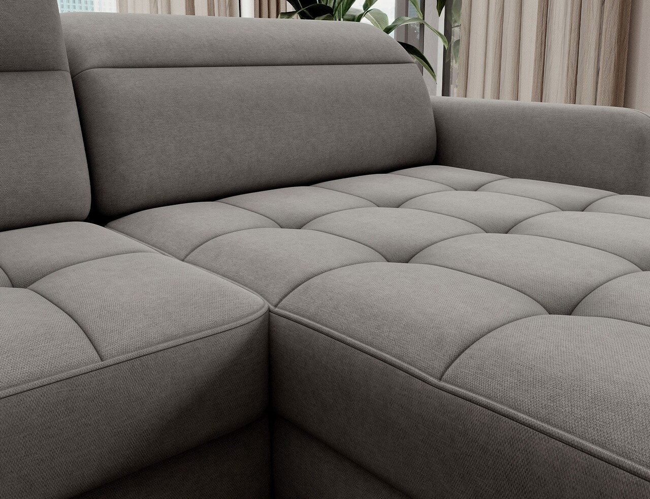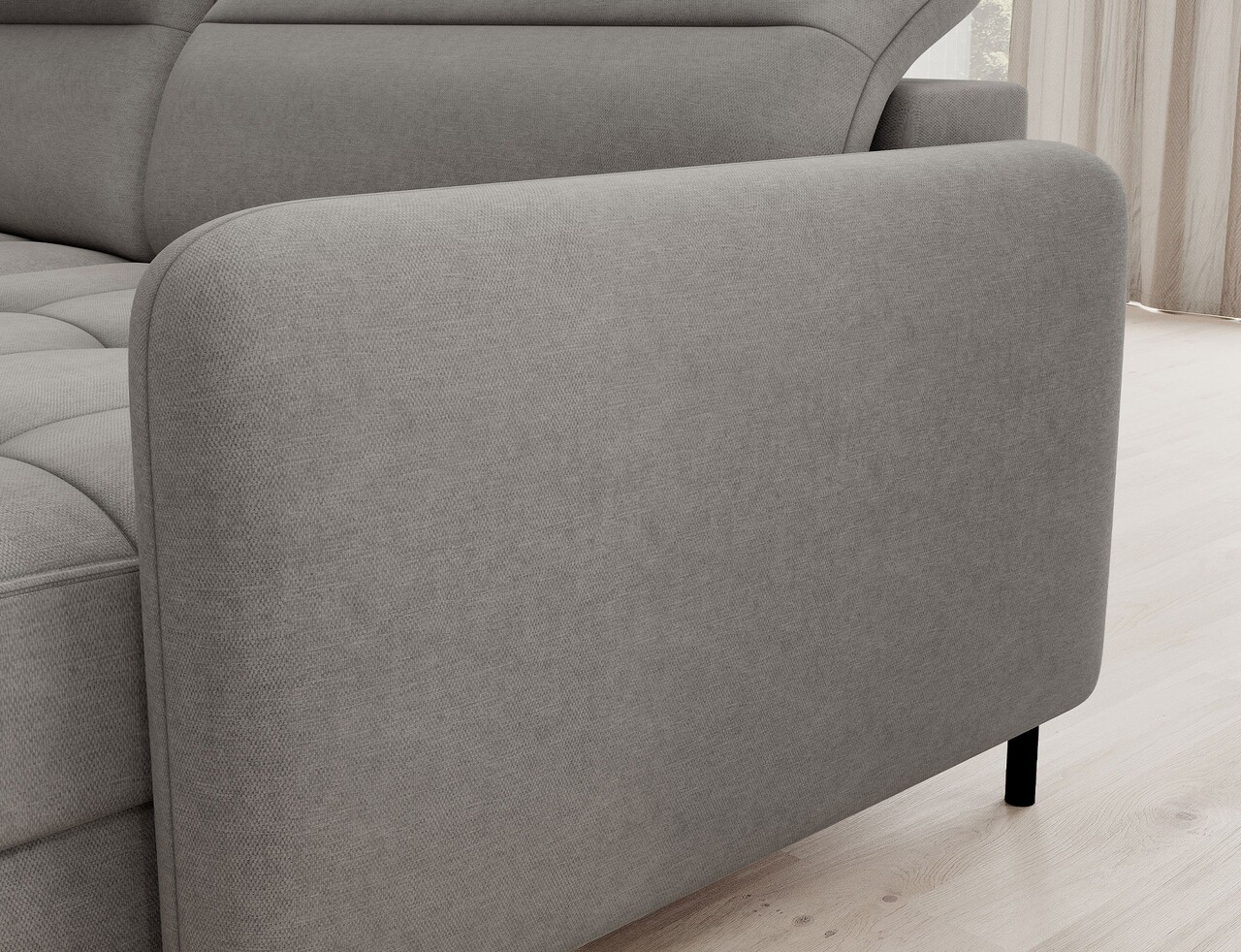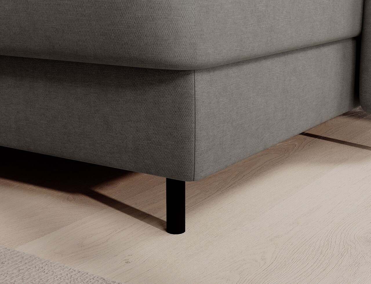 Coltar Berrto este o piesa de mobilier pentru living extrem de sofisticata, creata pentru a va oferi confort si functionalitate exceptionale. Acest coltar elegant combina designul modern cu utilizarea excelenta a componentelor de inalta calitate. Este fabricat folosind arcuri cu valuri de tip B care, impreuna cu spuma HR + T2130, extrem de elastica, creeaza o suprafata a sezutului cu un confort de neegalat. Acest lucru face sezutul moale, flexibil si se adapteaza perfect formei corpului, oferind nu numai relaxare, ci si usurare pentru muschi. Utilizarea curelelor de tapiterie si a spumei T2130 garanteaza durabilitatea si rezistenta la deformare. Nu trebuie sa va faceti griji cu privire la cutele inestetice deoarece acest coltar isi va pastra aspectul original pentru multi ani. Il puteti transforma rapid si usor intr-un pat confortabil, asigurandu-va dumneavoastra si oaspetilor dumneavoastra un somn bun. Coltarul Berrto nu inseamna doar confort, ci si fiabilitate. Durabilitatea sa este impresionanta, atingand o capacitate maxima de 390 kg. Aceasta inseamna ca va puteti bucura de el multi ani fara sa va faceti griji cu privire la durabilitatea acestuia. Coltarul Berrto se distinge nu numai prin functionalitatea sa, ci si prin finisajul sau estetic. Picioarele din otel negru ii confera o senzatie moderna, iar designul elegant il face un element minunat al decorului camerei de zi. Este echipat cu un mecanism de extindere de tip Delfin, usor de utilizat, care va permite sa il transformati rapid intr-un pat confortabil. Este solutia perfecta atunci cand aveti nevoie de un loc de dormit pentru oaspeti. Coltarul Berrto este o piesa de mobilier care imbina luxul, confortul si functionalitatea. Manopera sa de inalta calitate si finisajul atent il vor face nu numai punctul de atractie al camerei de zi, ci si un loc unde sa va relaxati si sa petreceti timp cu prietenii si familia.