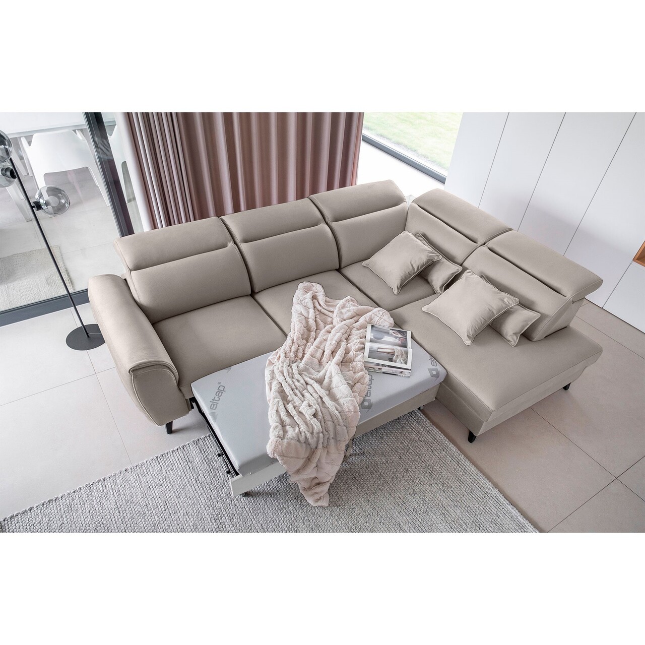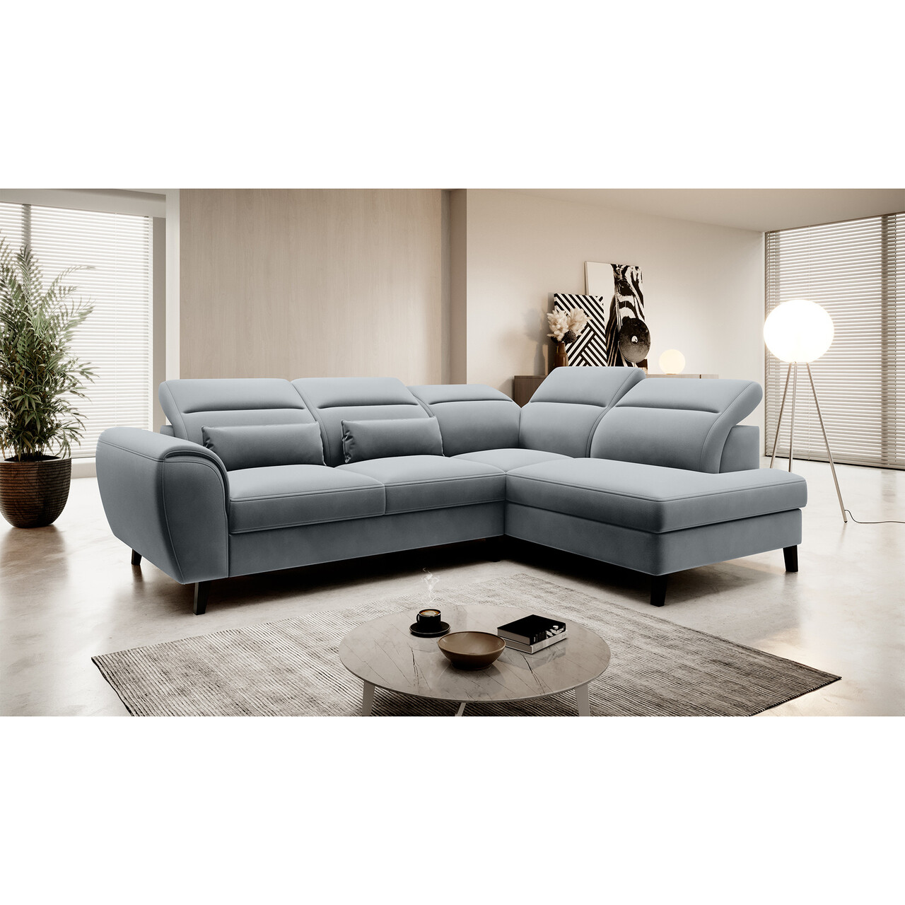 Coltar extensibil dreapta 4 locuri ELTAP, RT-04VE, Noble, 255x201x100 cm, lemn/poliester, gri