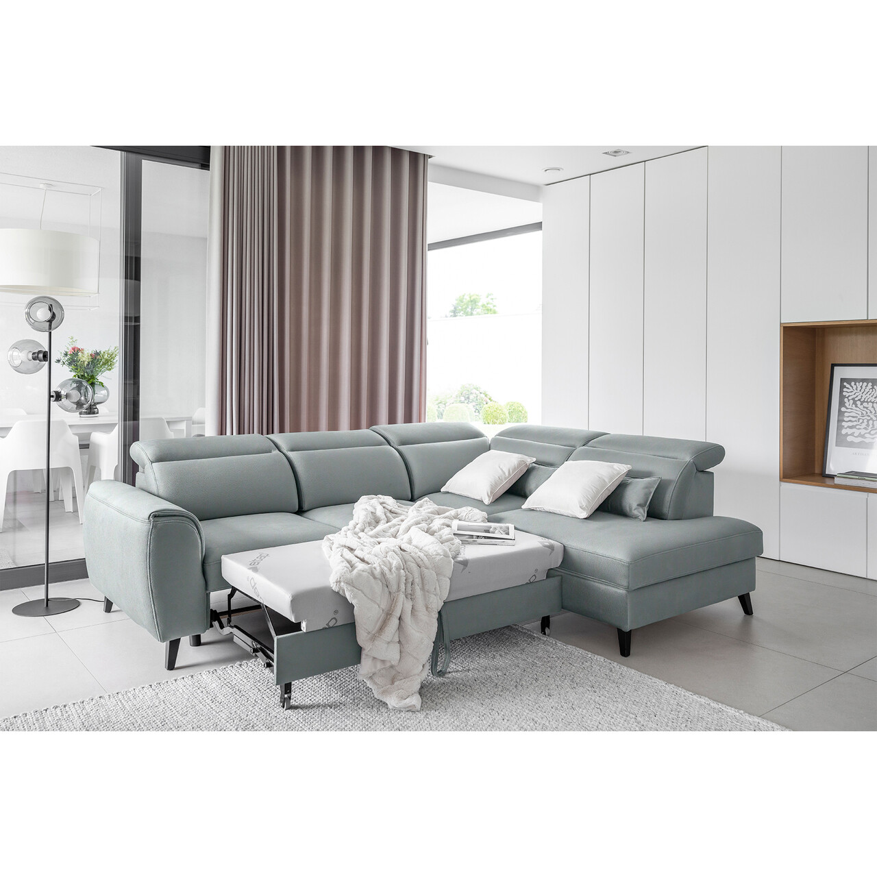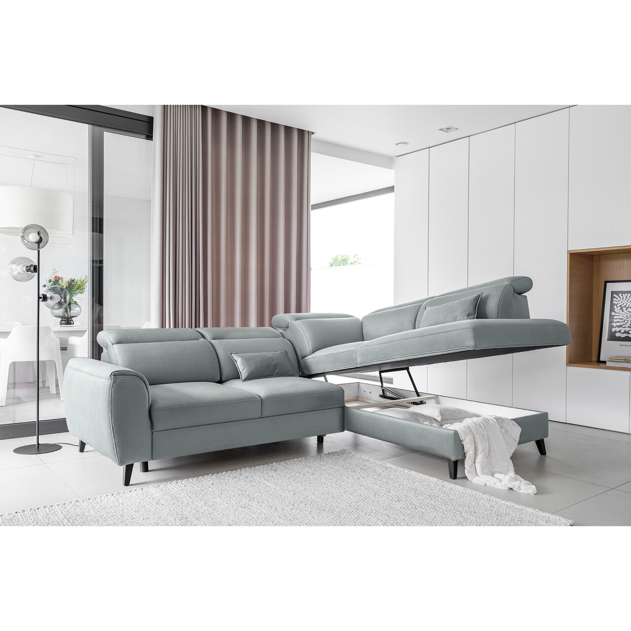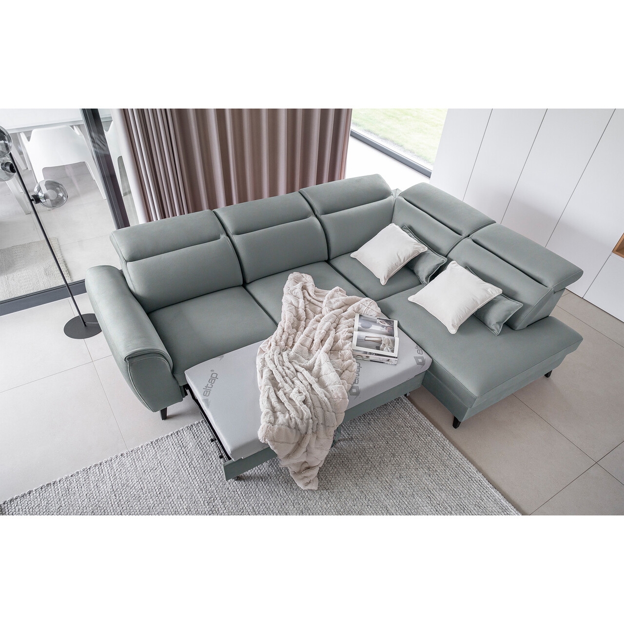 Coltar extensibil dreapta 4 locuri ELTAP, RT-100SAV, Noble, 255x201x100 cm, lemn/poliester, albastru