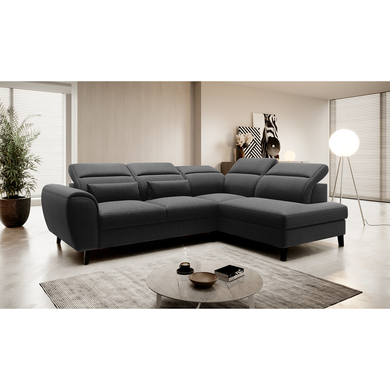 Coltar extensibil dreapta 4 locuri ELTAP, RT-10FL, Noble, 255x201x100 cm, lemn/poliester, negru