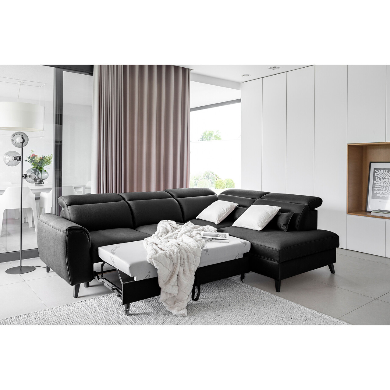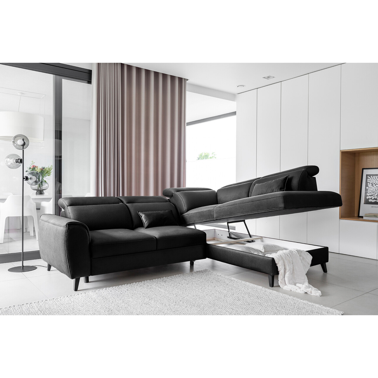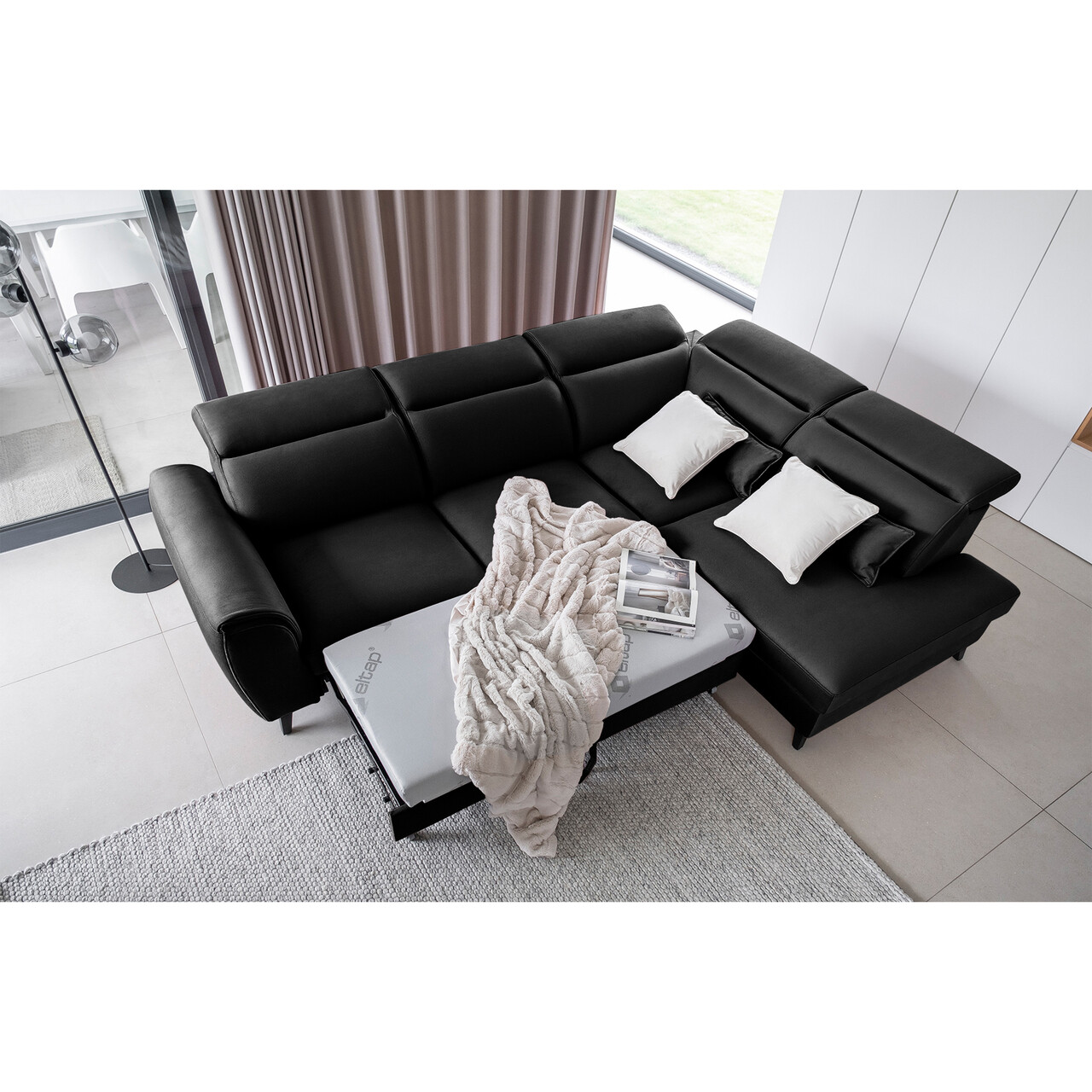 Coltar extensibil dreapta 4 locuri ELTAP, RT-10SAV, Noble, 255x201x100 cm, lemn/poliester, negru