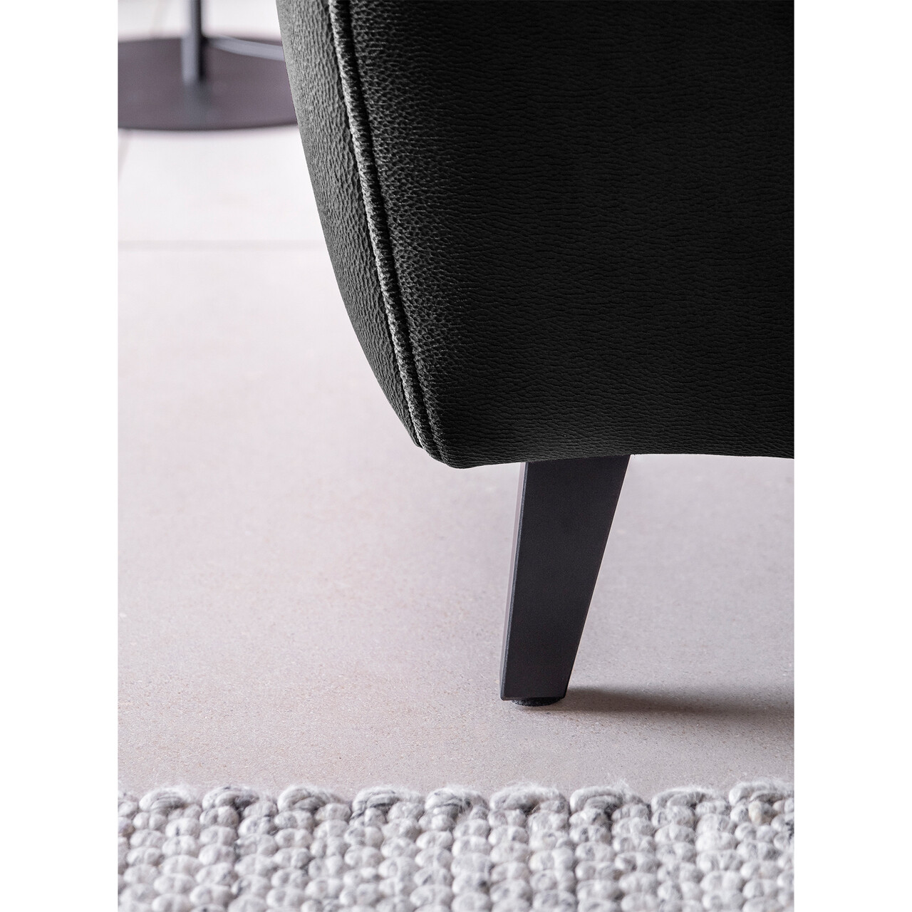 Picioare din lemn de culoare neagra.