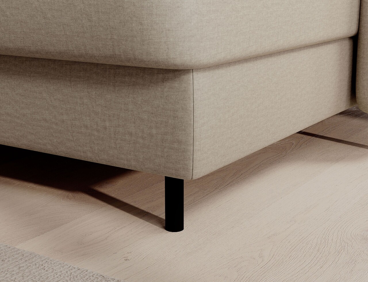 Coltar Berrto este o piesa de mobilier pentru living extrem de sofisticata, creata pentru a va oferi confort si functionalitate exceptionale. Acest coltar elegant combina designul modern cu utilizarea excelenta a componentelor de inalta calitate. Este fabricat folosind arcuri cu valuri de tip B care, impreuna cu spuma HR + T2130, extrem de elastica, creeaza o suprafata a sezutului cu un confort de neegalat. Acest lucru face sezutul moale, flexibil si se adapteaza perfect formei corpului, oferind nu numai relaxare, ci si usurare pentru muschi. Utilizarea curelelor de tapiterie si a spumei T2130 garanteaza durabilitatea si rezistenta la deformare. Nu trebuie sa va faceti griji cu privire la cutele inestetice deoarece acest coltar isi va pastra aspectul original pentru multi ani. Il puteti transforma rapid si usor intr-un pat confortabil, asigurandu-va dumneavoastra si oaspetilor dumneavoastra un somn bun. Coltarul Berrto nu inseamna doar confort, ci si fiabilitate. Durabilitatea sa este impresionanta, atingand o capacitate maxima de 390 kg. Aceasta inseamna ca va puteti bucura de el multi ani fara sa va faceti griji cu privire la durabilitatea acestuia. Coltarul Berrto se distinge nu numai prin functionalitatea sa, ci si prin finisajul sau estetic. Picioarele din otel negru ii confera o senzatie moderna, iar designul elegant il face un element minunat al decorului camerei de zi. Este echipat cu un mecanism de extindere de tip Delfin, usor de utilizat, care va permite sa il transformati rapid intr-un pat confortabil. Este solutia perfecta atunci cand aveti nevoie de un loc de dormit pentru oaspeti. Coltarul Berrto este o piesa de mobilier care imbina luxul, confortul si functionalitatea. Manopera sa de inalta calitate si finisajul atent il vor face nu numai punctul de atractie al camerei de zi, ci si un loc unde sa va relaxati si sa petreceti timp cu prietenii si familia.