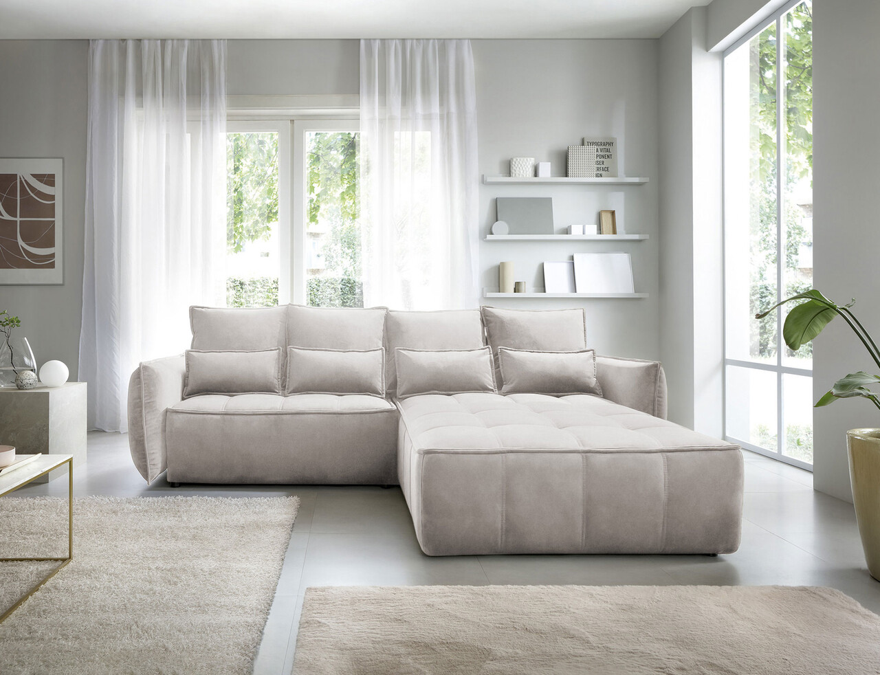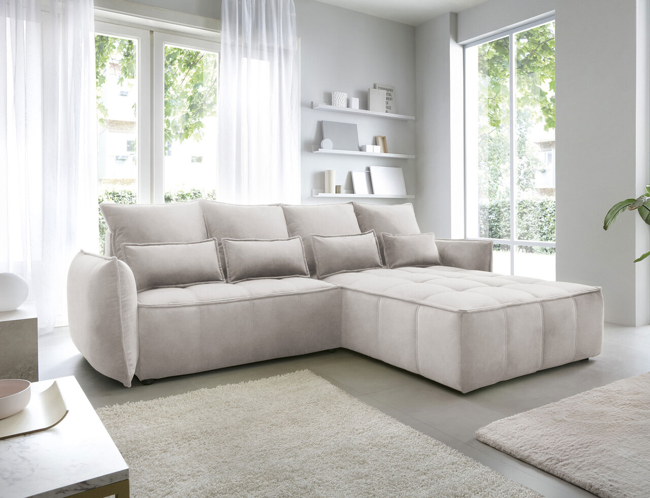 Coltar extensibil dreapta 4 locuri ELTAP, RT-18REL, Campo, 265x196x88 cm, lemn/poliester, bej deschis