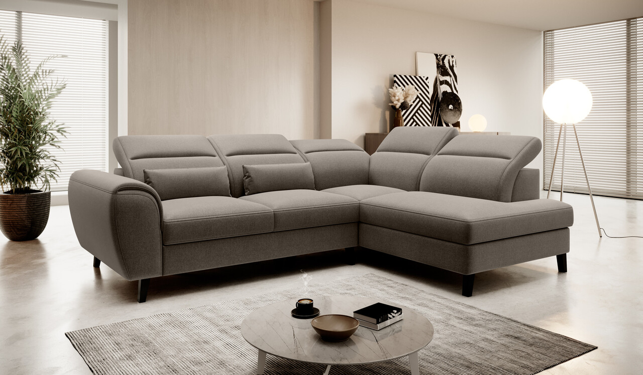 Coltar extensibil dreapta 4 locuri ELTAP, RT-18VER, Noble, 255x201x100 cm, lemn/poliester, bej inchis