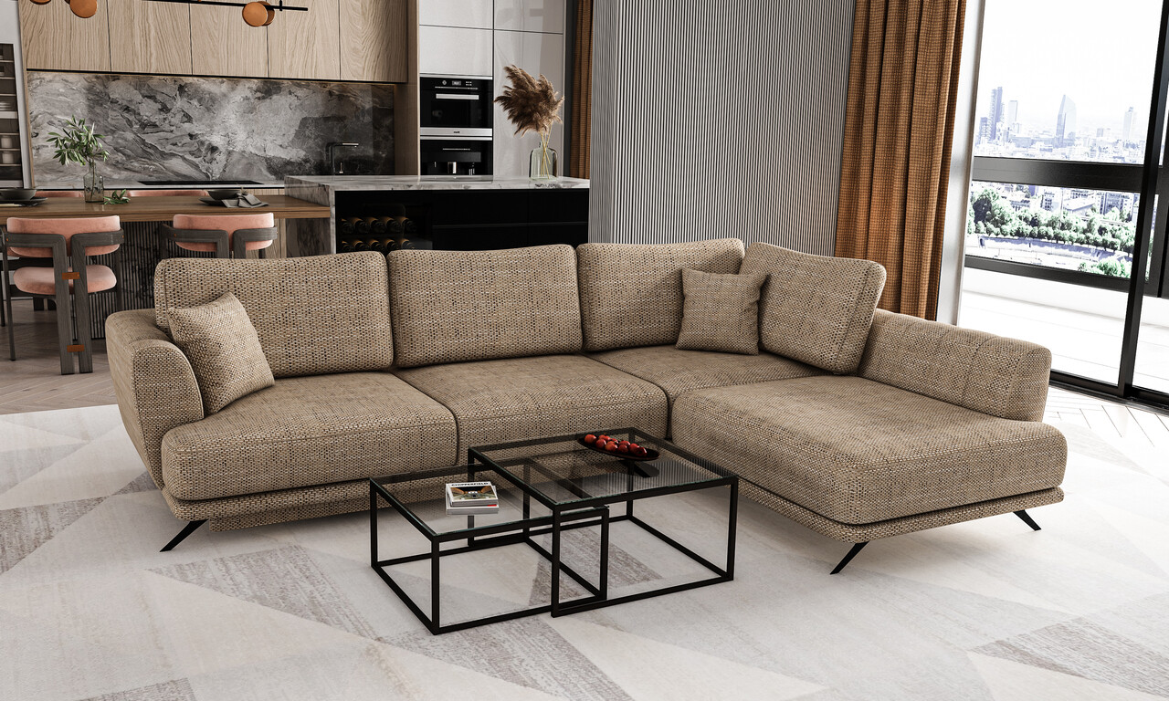 Coltar extensibil dreapta 4 locuri ELTAP, RT-20MA, Larde, 286x191x90 cm, lemn/poliester, bej inchis