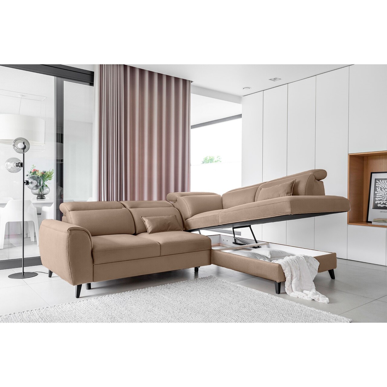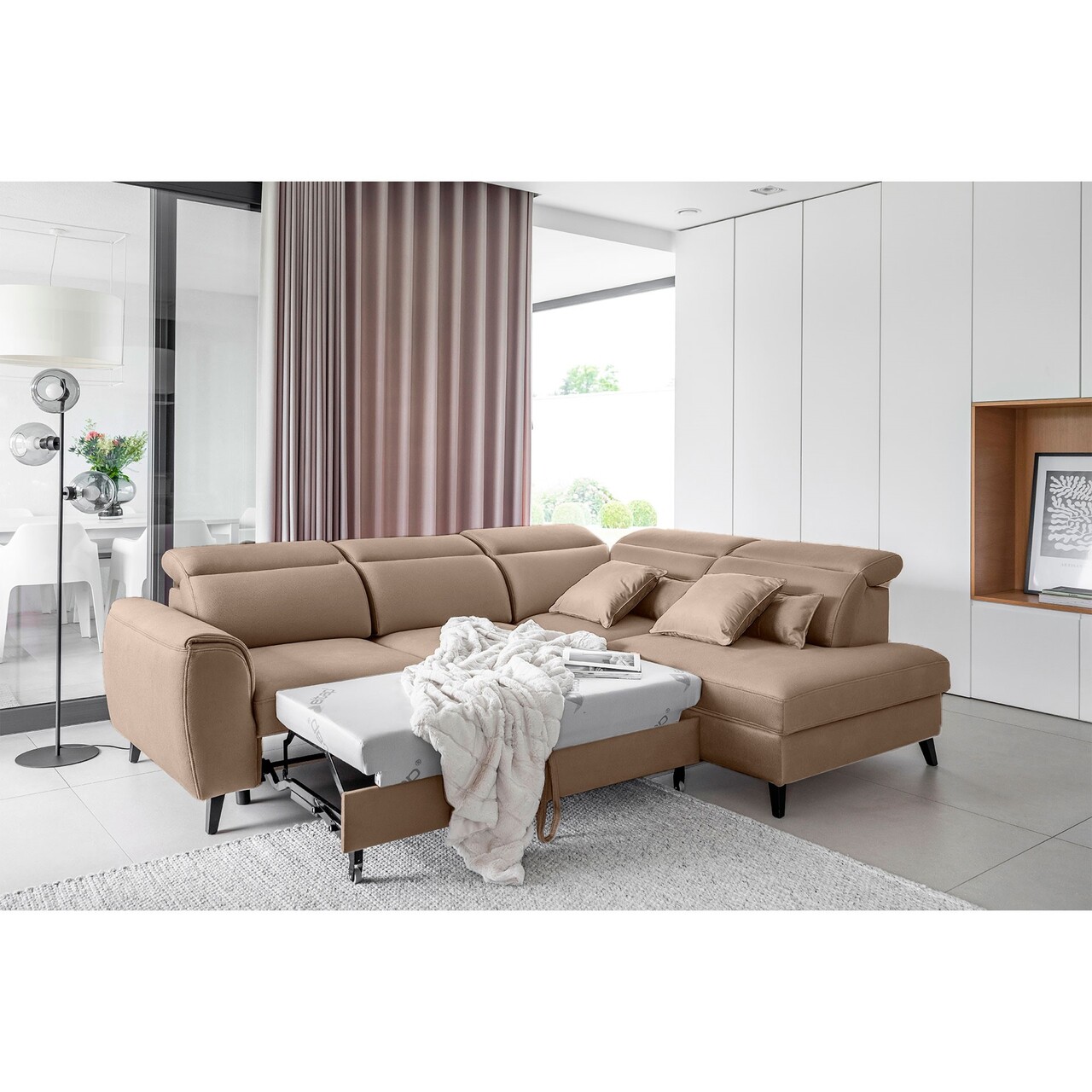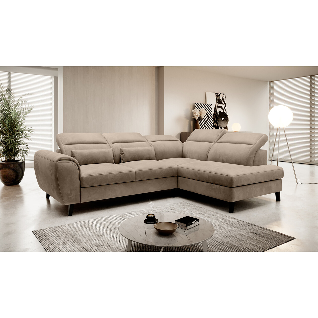 Coltar extensibil dreapta 4 locuri ELTAP, RT-20NU, Noble, 255x201x100 cm, lemn/poliester, maro deschis