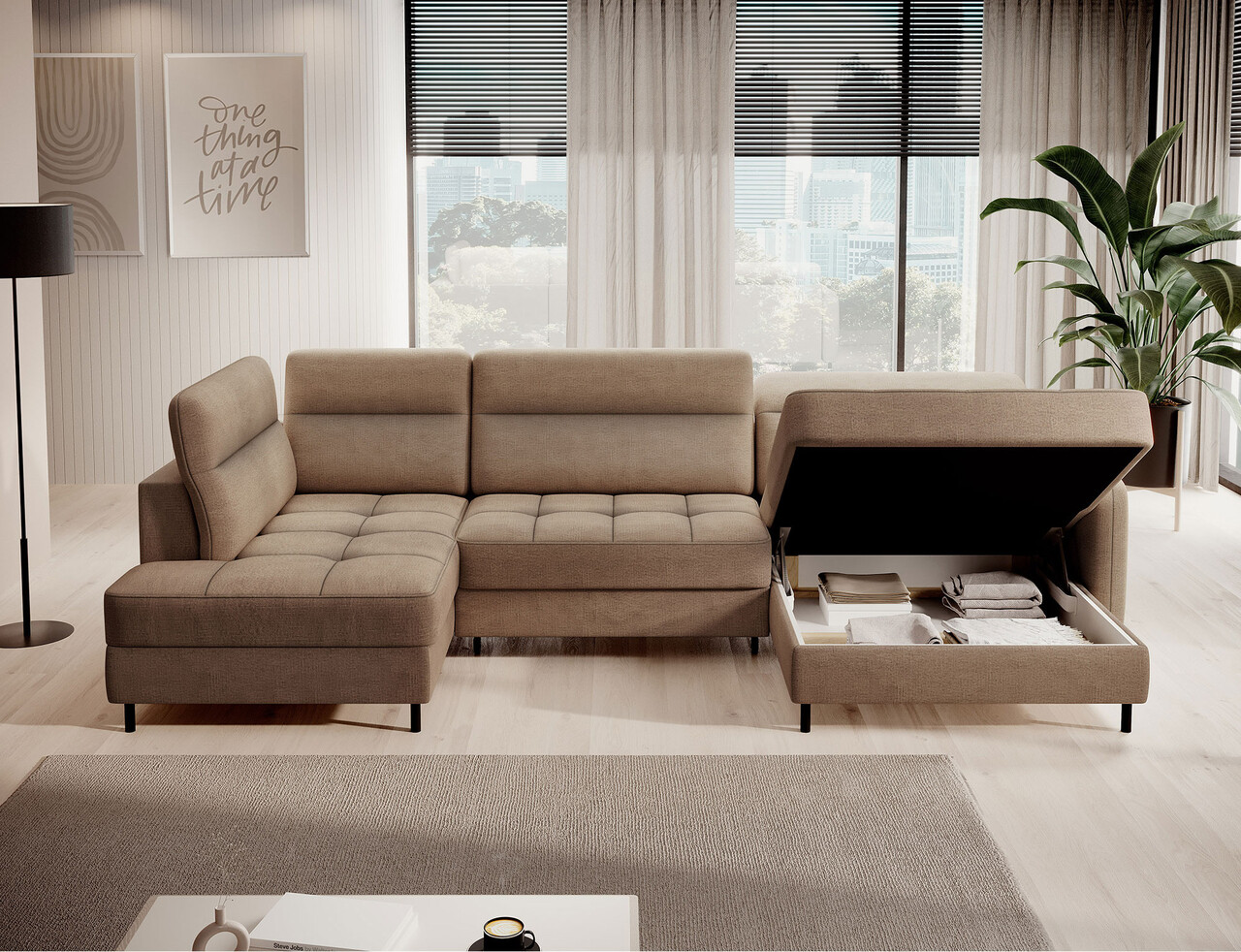 Coltar Berrto este o piesa de mobilier pentru living extrem de sofisticata, creata pentru a va oferi confort si functionalitate exceptionale. Acest coltar elegant combina designul modern cu utilizarea excelenta a componentelor de inalta calitate. Este fabricat folosind arcuri cu valuri de tip B care, impreuna cu spuma HR + T2130, extrem de elastica, creeaza o suprafata a sezutului cu un confort de neegalat. Acest lucru face sezutul moale, flexibil si se adapteaza perfect formei corpului, oferind nu numai relaxare, ci si usurare pentru muschi. Utilizarea curelelor de tapiterie si a spumei T2130 garanteaza durabilitatea si rezistenta la deformare. Nu trebuie sa va faceti griji cu privire la cutele inestetice deoarece acest coltar isi va pastra aspectul original pentru multi ani. Il puteti transforma rapid si usor intr-un pat confortabil, asigurandu-va dumneavoastra si oaspetilor dumneavoastra un somn bun. Coltarul Berrto nu inseamna doar confort, ci si fiabilitate. Durabilitatea sa este impresionanta, atingand o capacitate maxima de 390 kg. Aceasta inseamna ca va puteti bucura de el multi ani fara sa va faceti griji cu privire la durabilitatea acestuia. Coltarul Berrto se distinge nu numai prin functionalitatea sa, ci si prin finisajul sau estetic. Picioarele din otel negru ii confera o senzatie moderna, iar designul elegant il face un element minunat al decorului camerei de zi. Este echipat cu un mecanism de extindere de tip Delfin, usor de utilizat, care va permite sa il transformati rapid intr-un pat confortabil. Este solutia perfecta atunci cand aveti nevoie de un loc de dormit pentru oaspeti. Coltarul Berrto este o piesa de mobilier care imbina luxul, confortul si functionalitatea. Manopera sa de inalta calitate si finisajul atent il vor face nu numai punctul de atractie al camerei de zi, ci si un loc unde sa va relaxati si sa petreceti timp cu prietenii si familia.