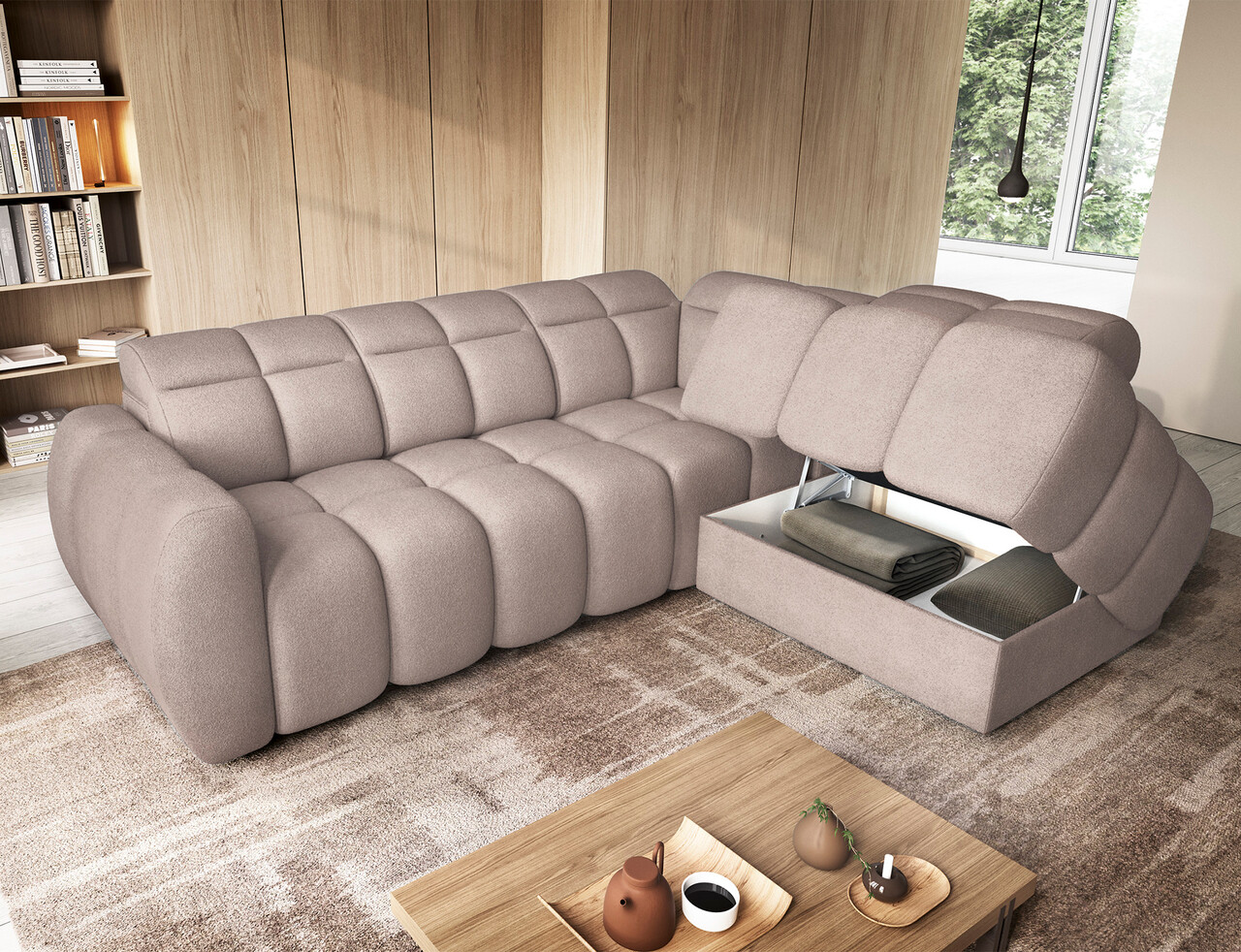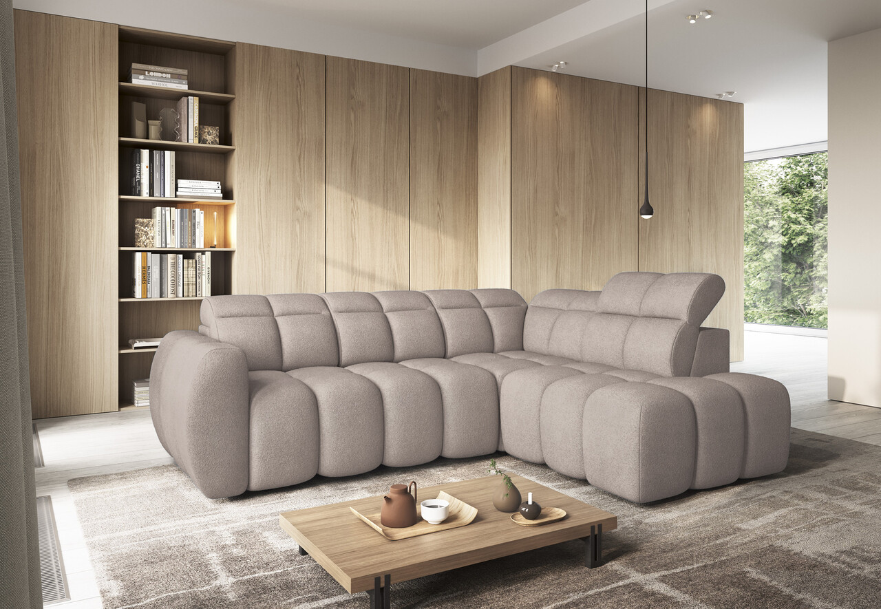 Coltar extensibil dreapta 4 locuri ELTAP, RT-20XIL, Falconn, 258x208x107 cm, lemn/poliester, maro deschis