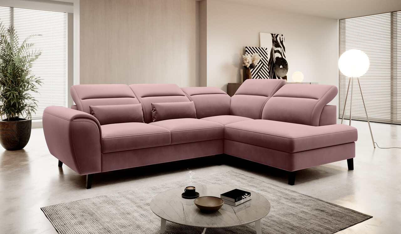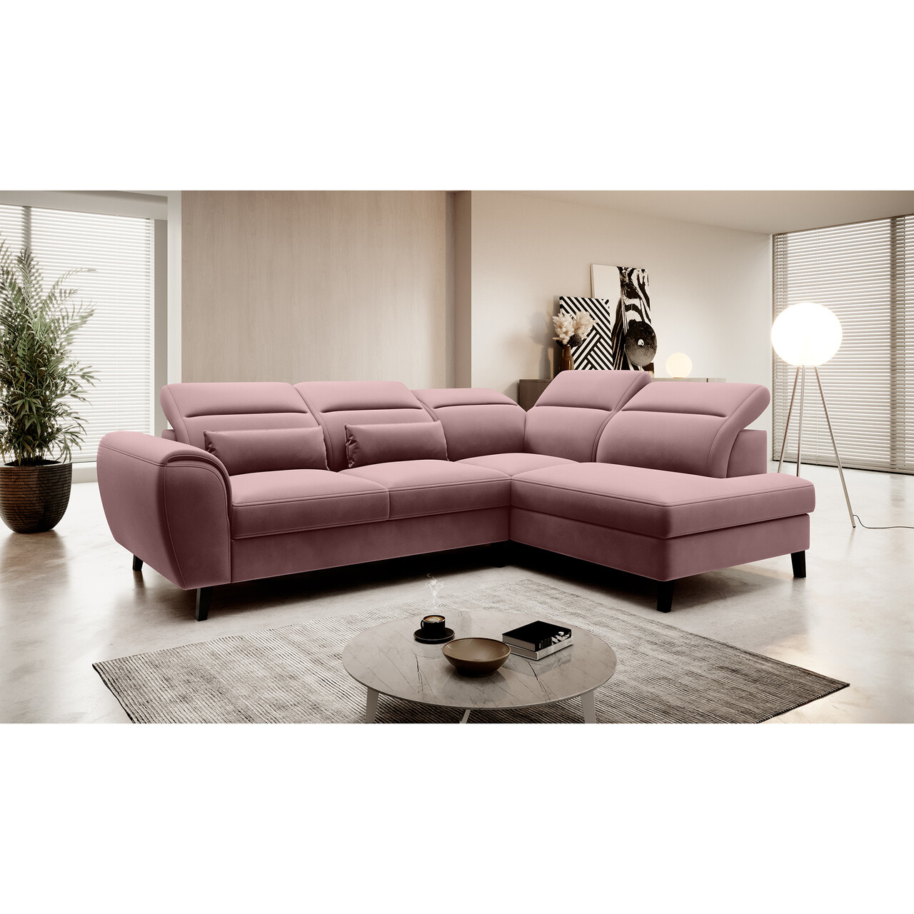 Coltar extensibil dreapta 4 locuri ELTAP, RT-24VE, Noble, 255x201x100 cm, lemn/poliester, roz