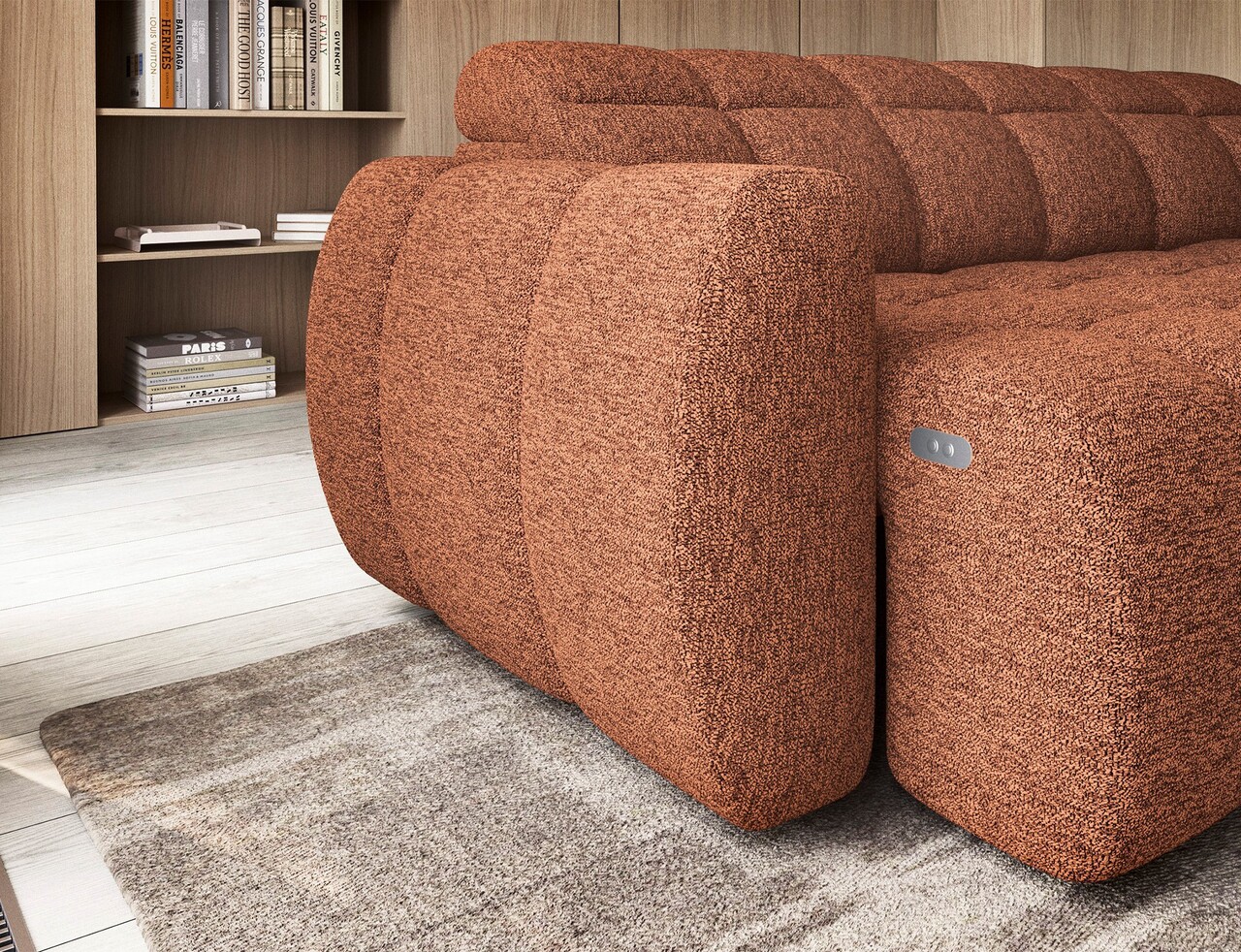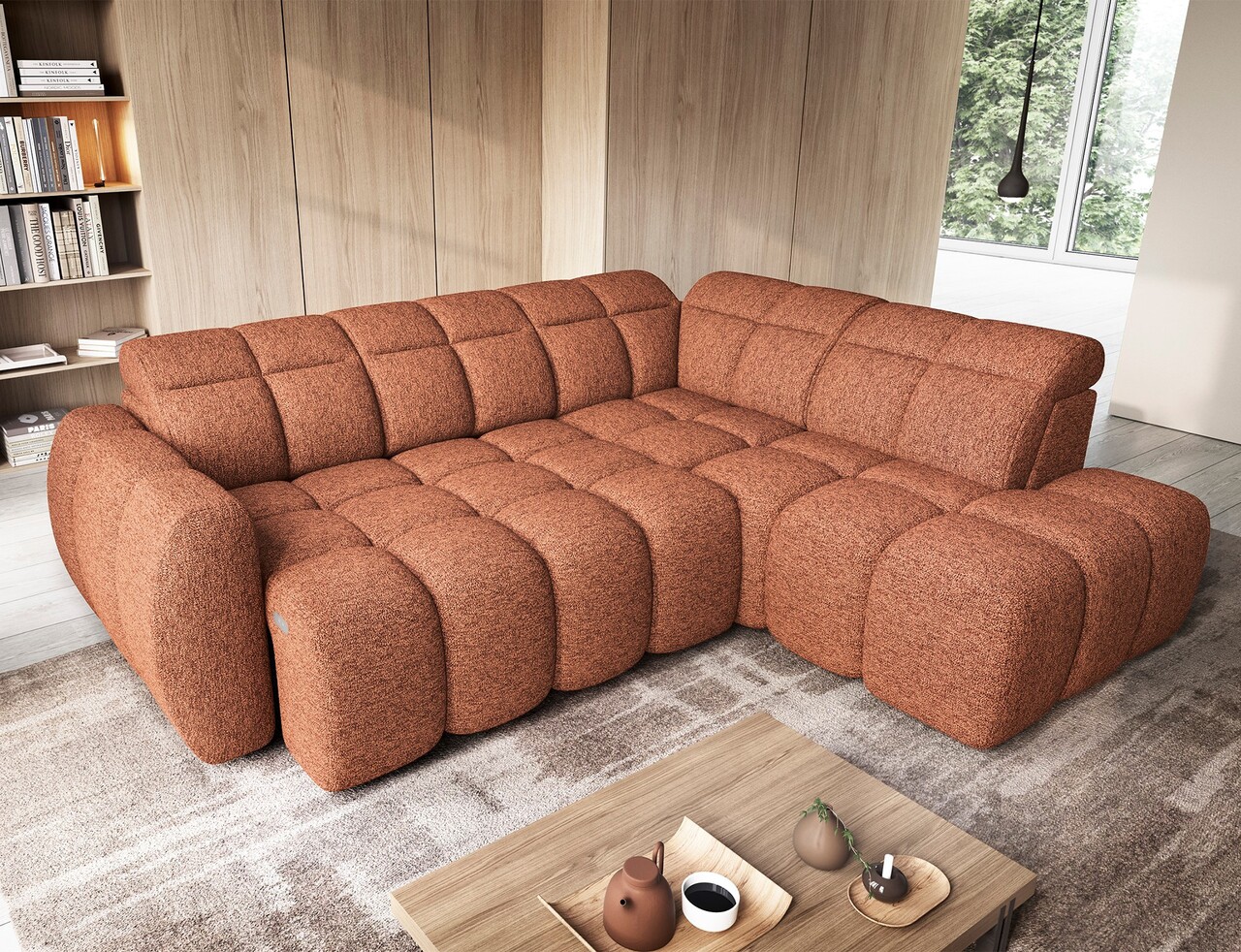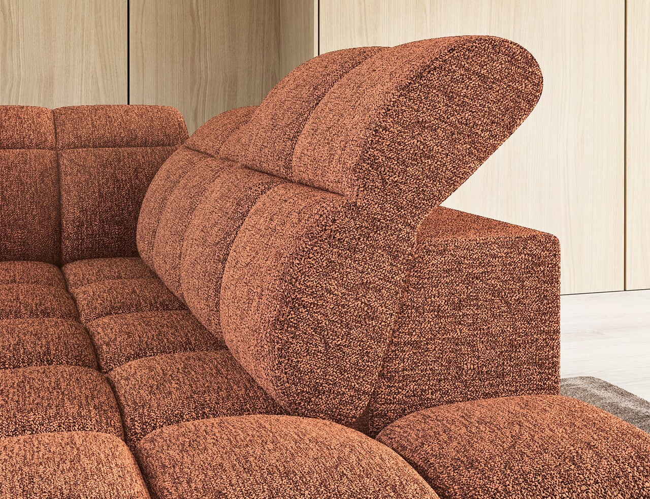 Coltar extensibil dreapta 4 locuri ELTAP, RT-30COR, Falconn, 258x208x107 cm, lemn/poliester, caramiziu