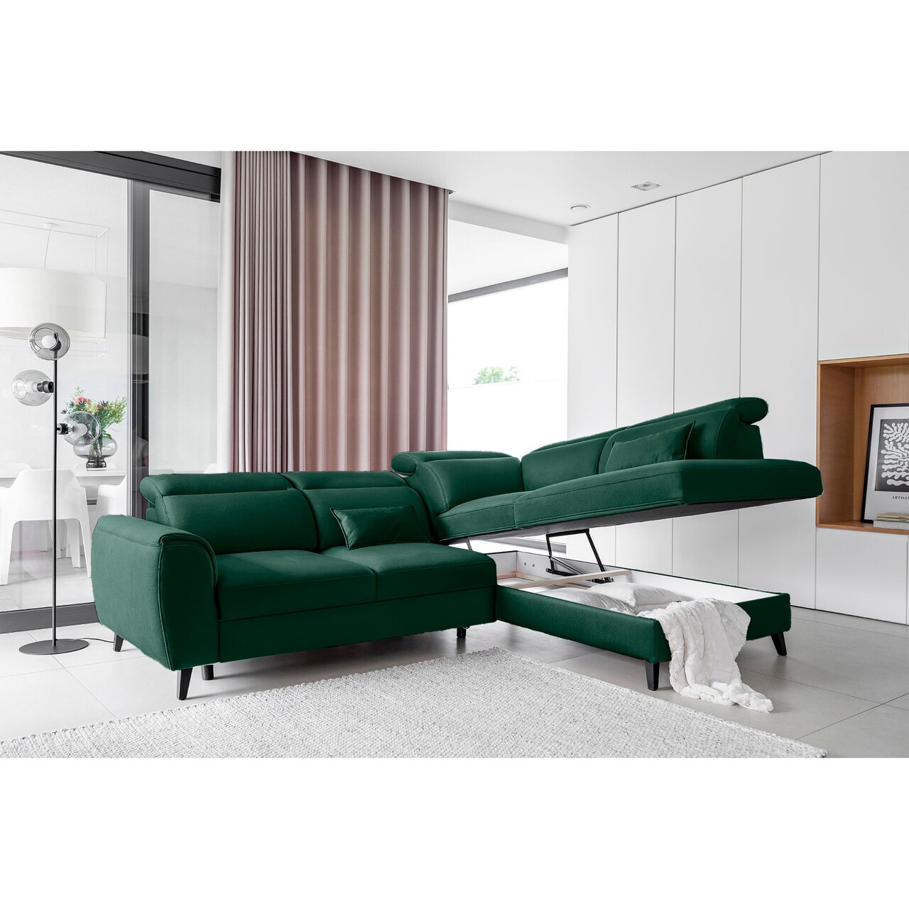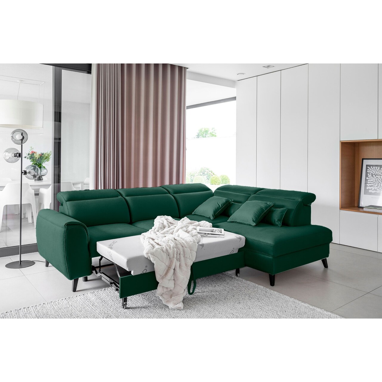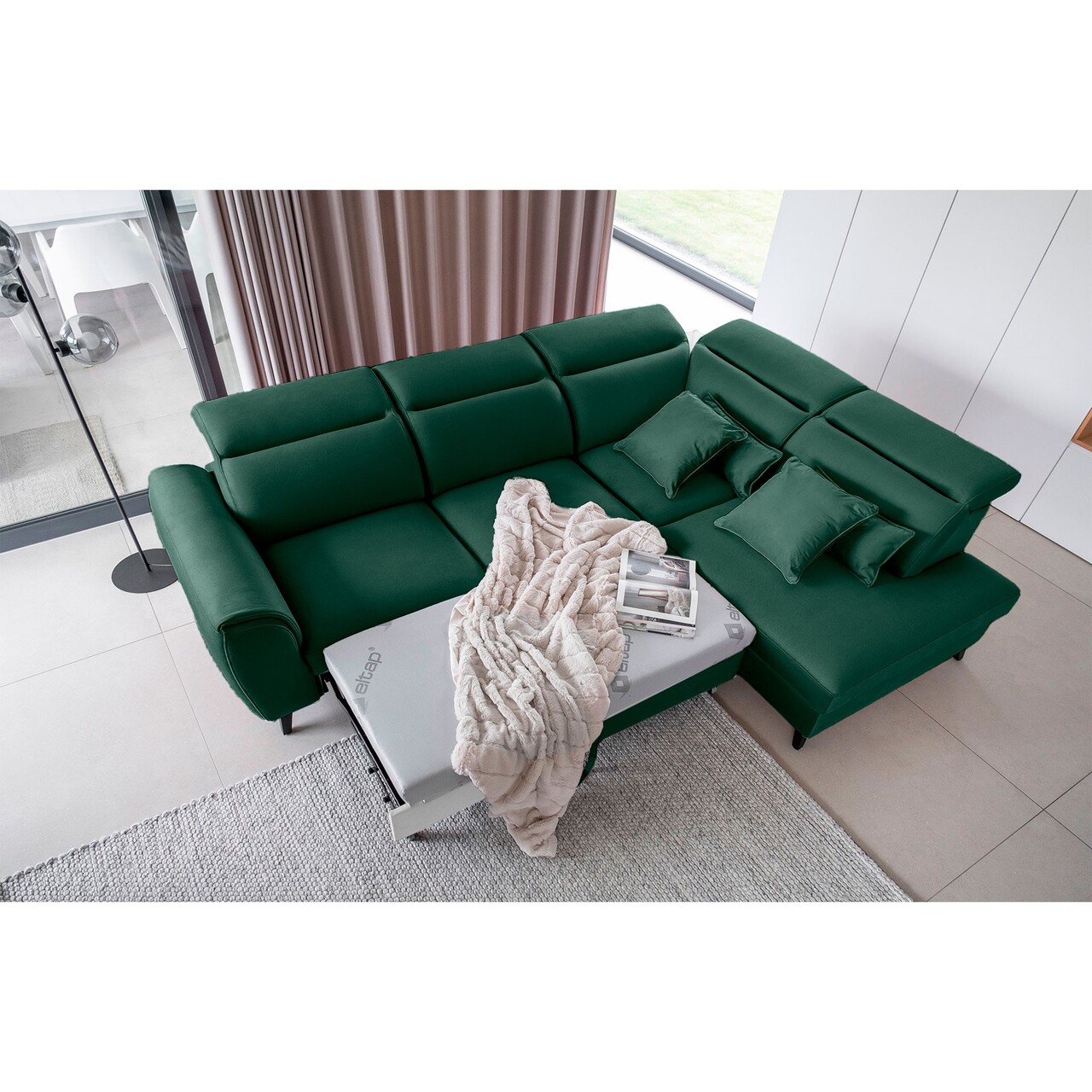 Coltar extensibil dreapta 4 locuri ELTAP, RT-35NU, Noble, 255x201x100 cm, lemn/poliester, verde inchis