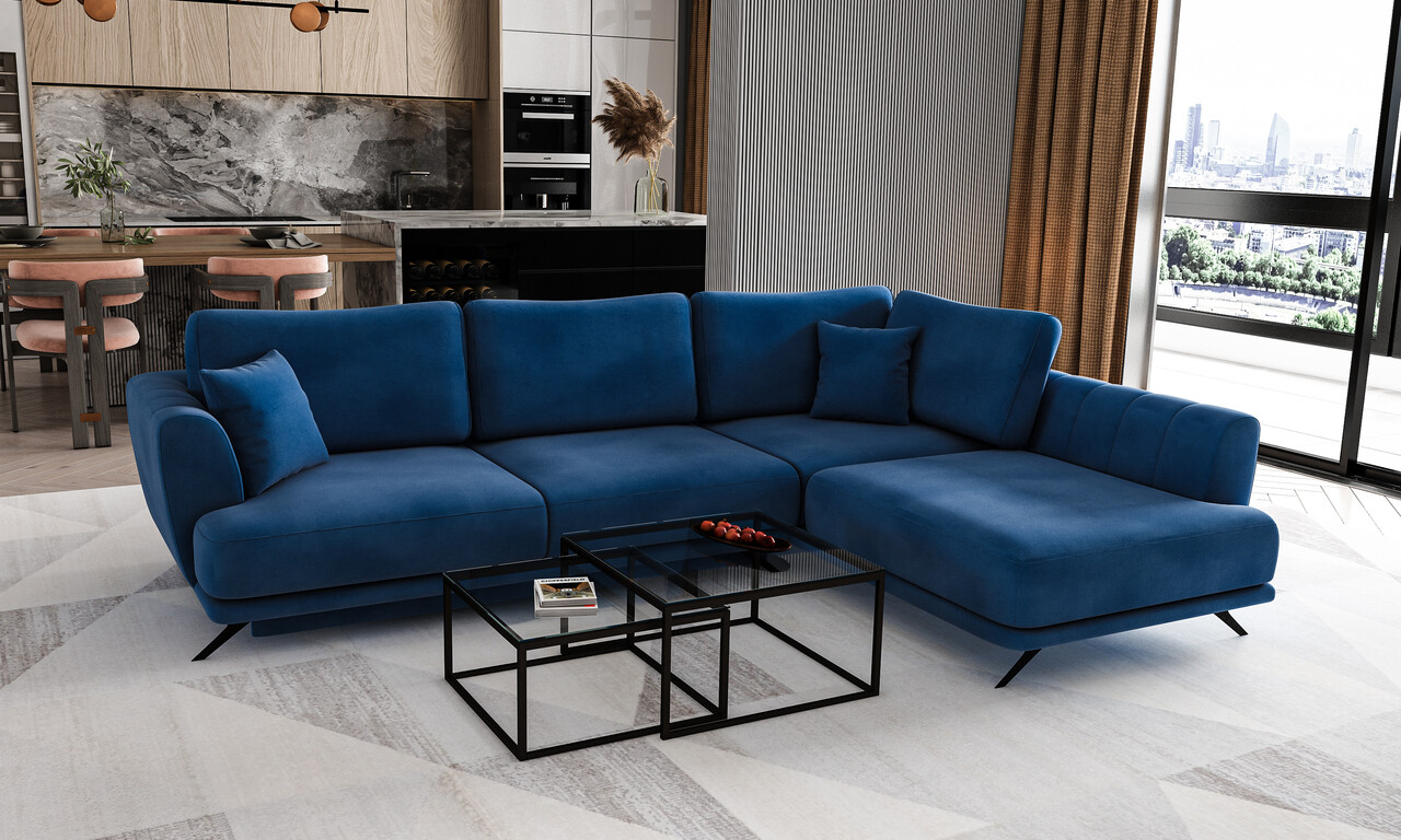 Coltar extensibil dreapta 4 locuri ELTAP, RT-40LO, Larde, 286x191x90 cm, lemn/poliester, albastru inchis