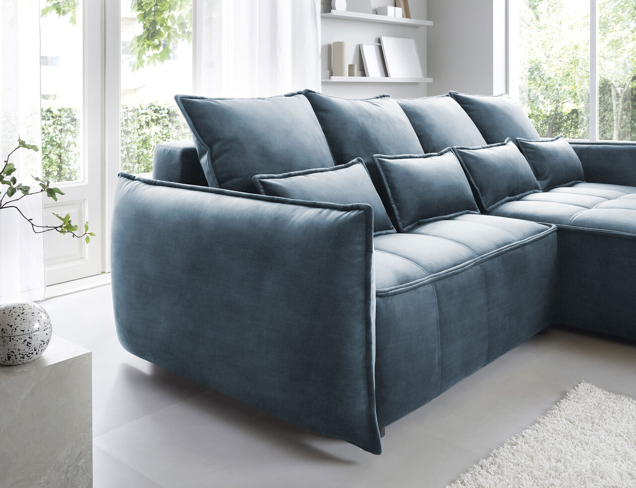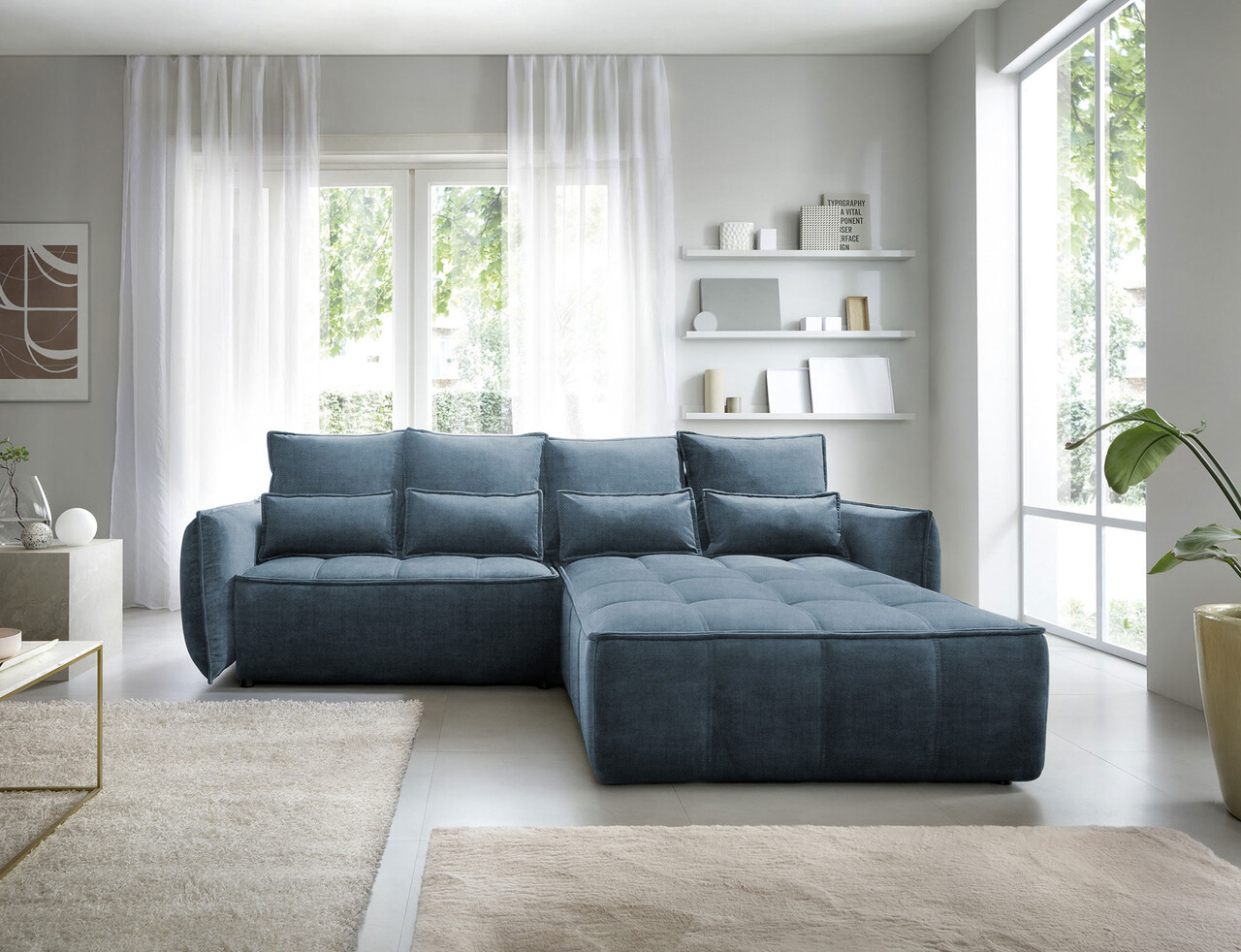 Coltar extensibil dreapta 4 locuri ELTAP, RT-40MAN, Campo, 265x196x88 cm, lemn/poliester, albastru inchis