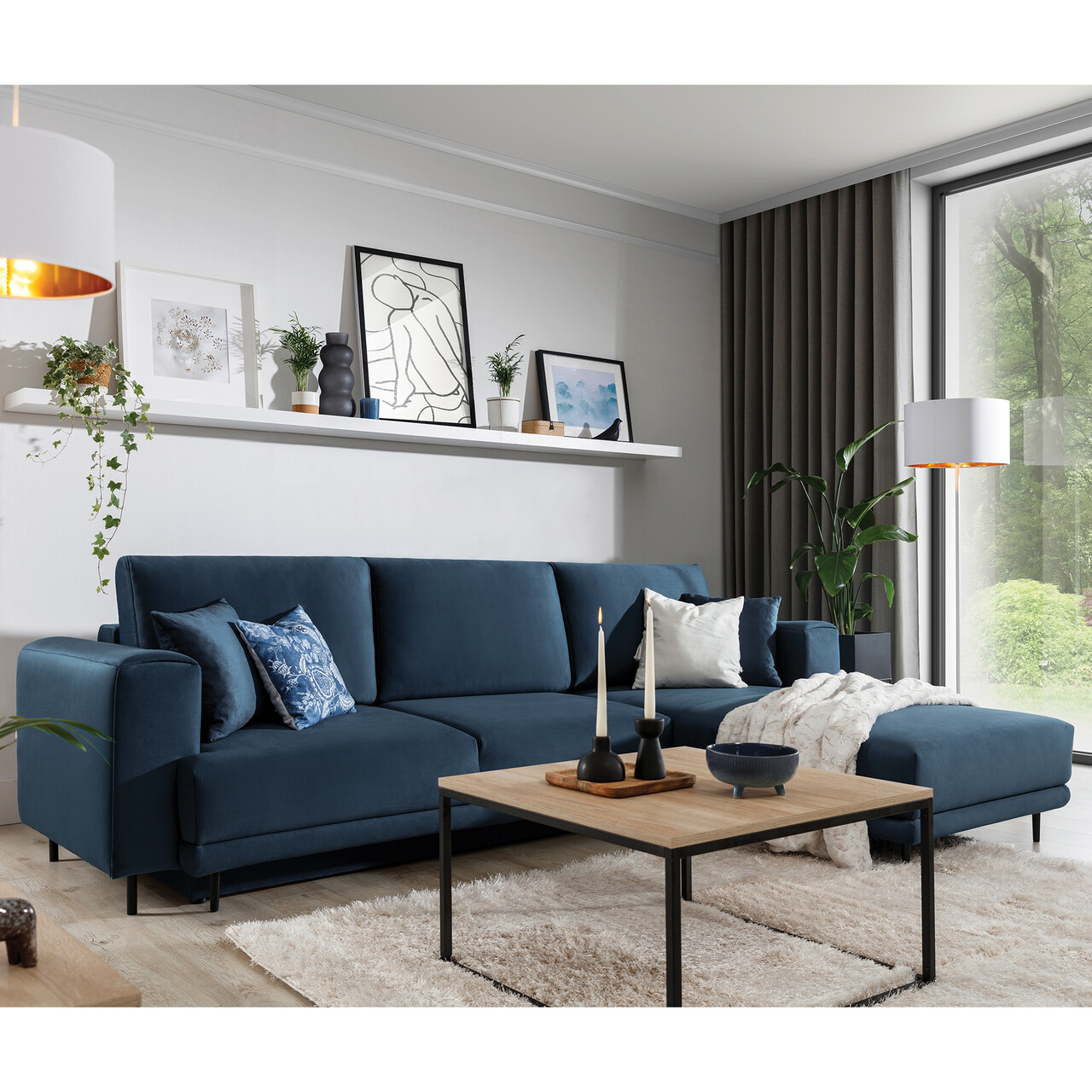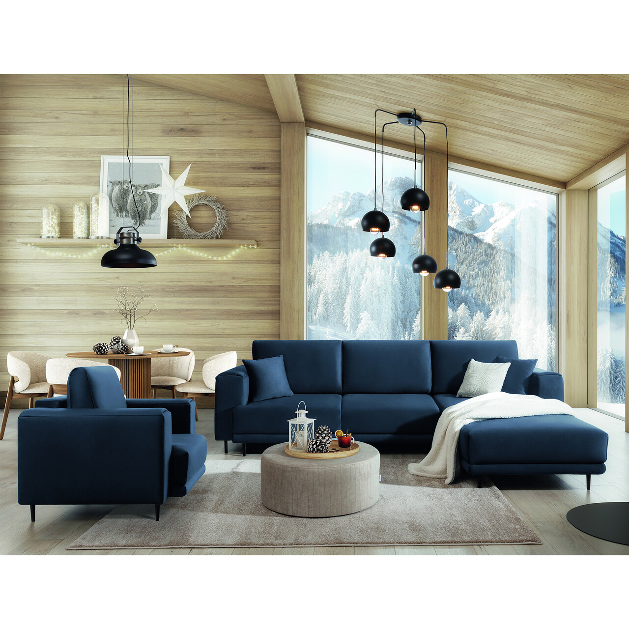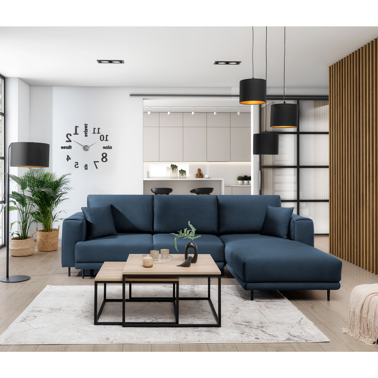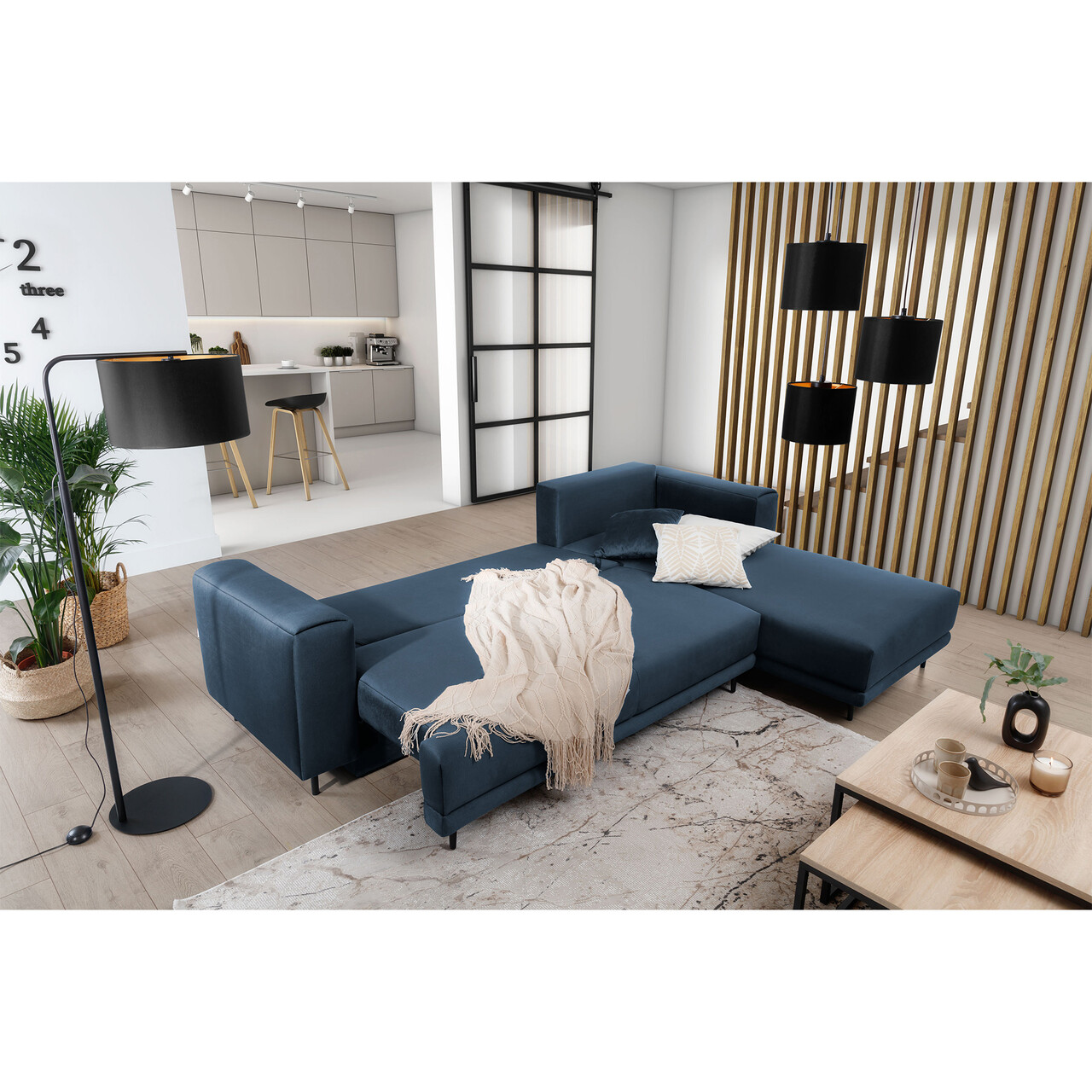 Coltar extensibil dreapta 4 locuri ELTAP, RT-40NU, Dalia, 289x190x95 cm, lemn/poliester, albastru inchis