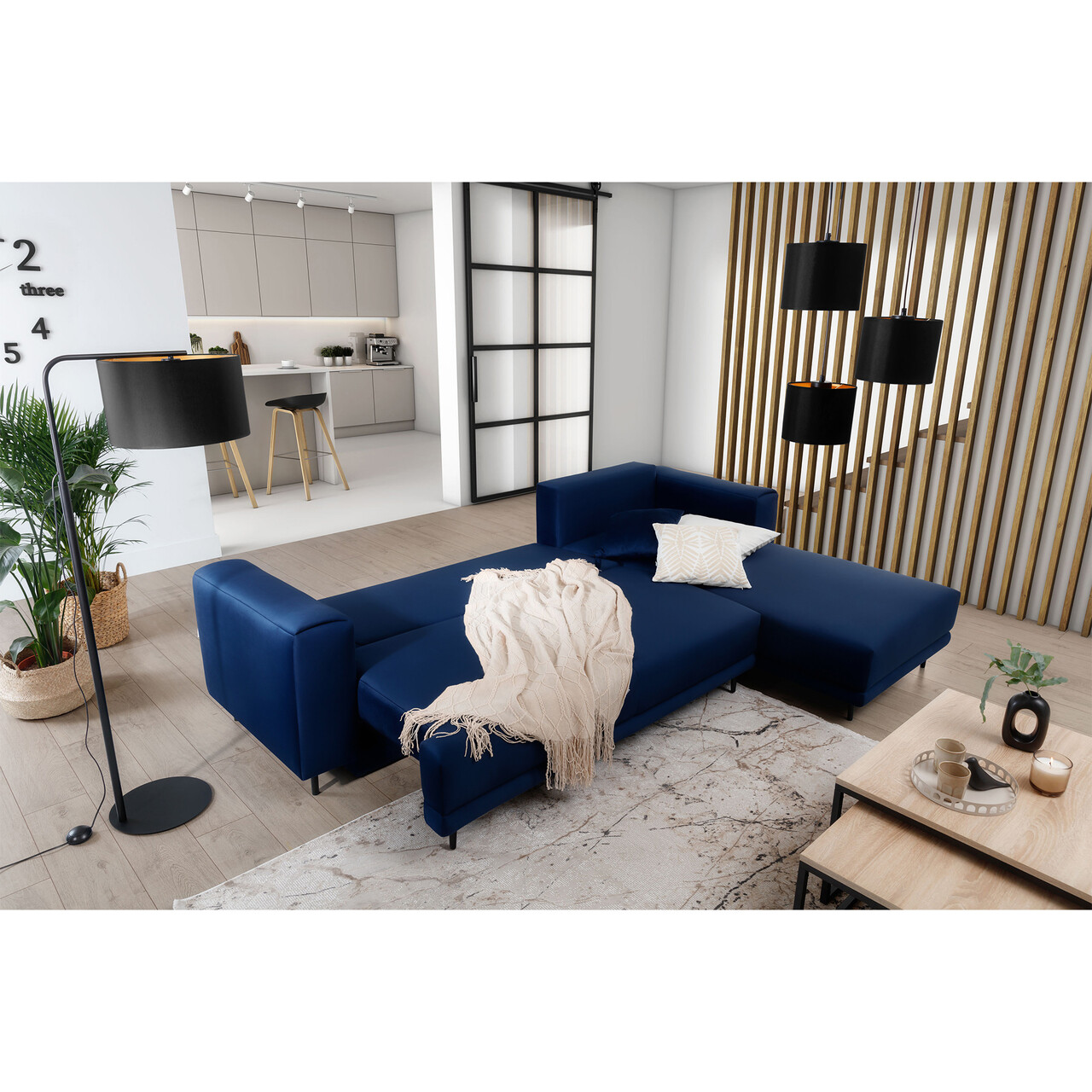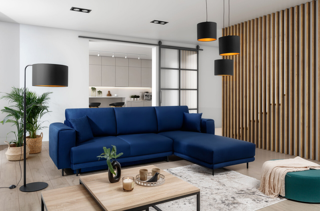 Coltar extensibil dreapta 4 locuri ELTAP, RT-40VE, Dalia, 289x190x95 cm, lemn/poliester, albastru
