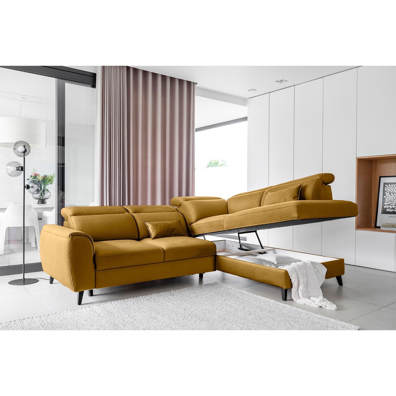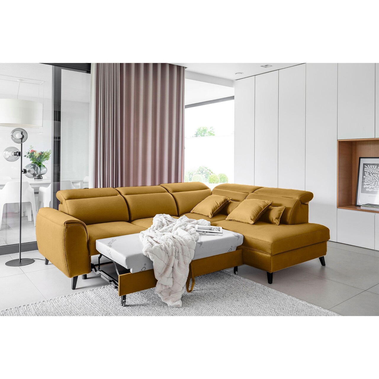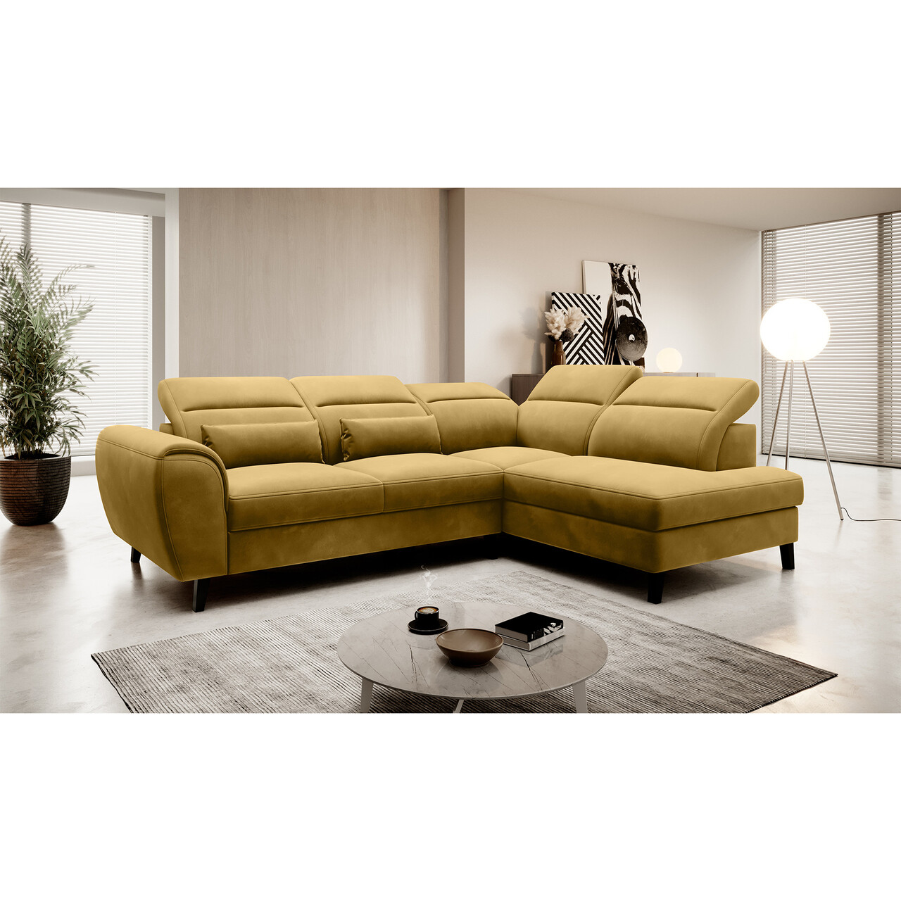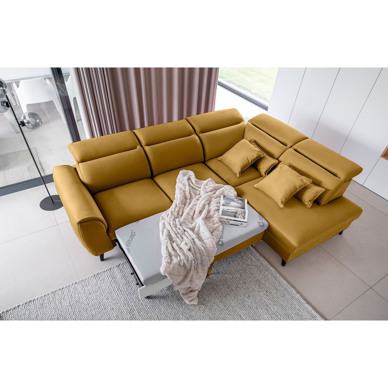 Coltar extensibil dreapta 4 locuri ELTAP, RT-45LO, Noble, 255x201x100 cm, lemn/poliester, mustar