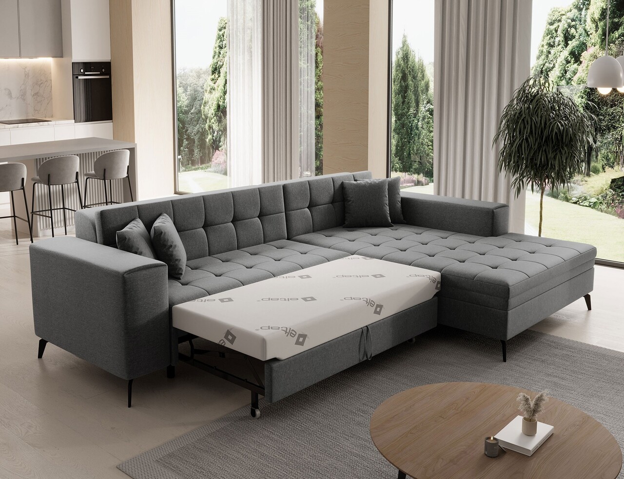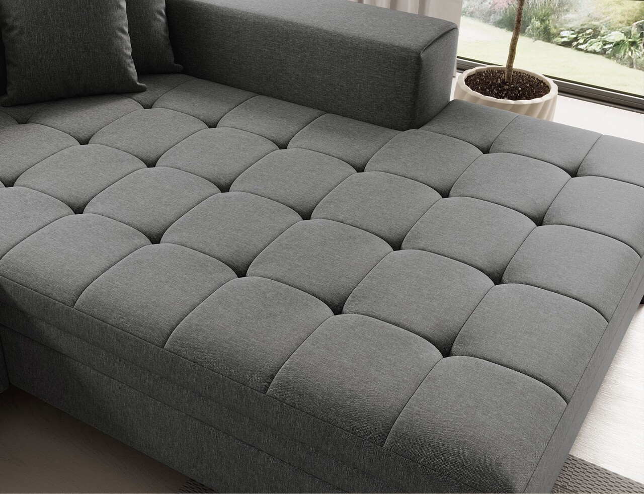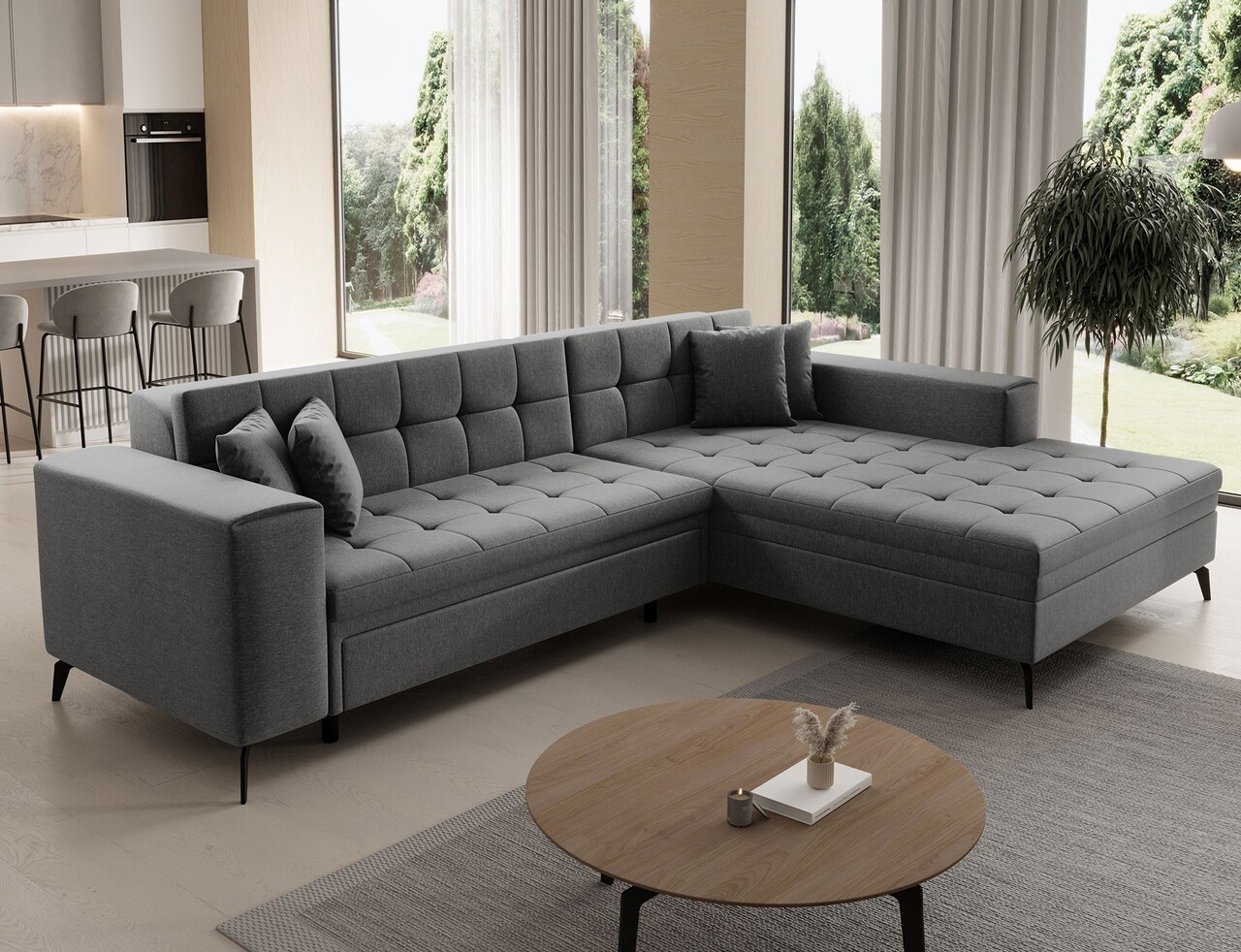 Coltar extensibil dreapta 4 locuri ELTAP, Sol-25, Solange, 292x196x84 cm, lemn/poliester, gri