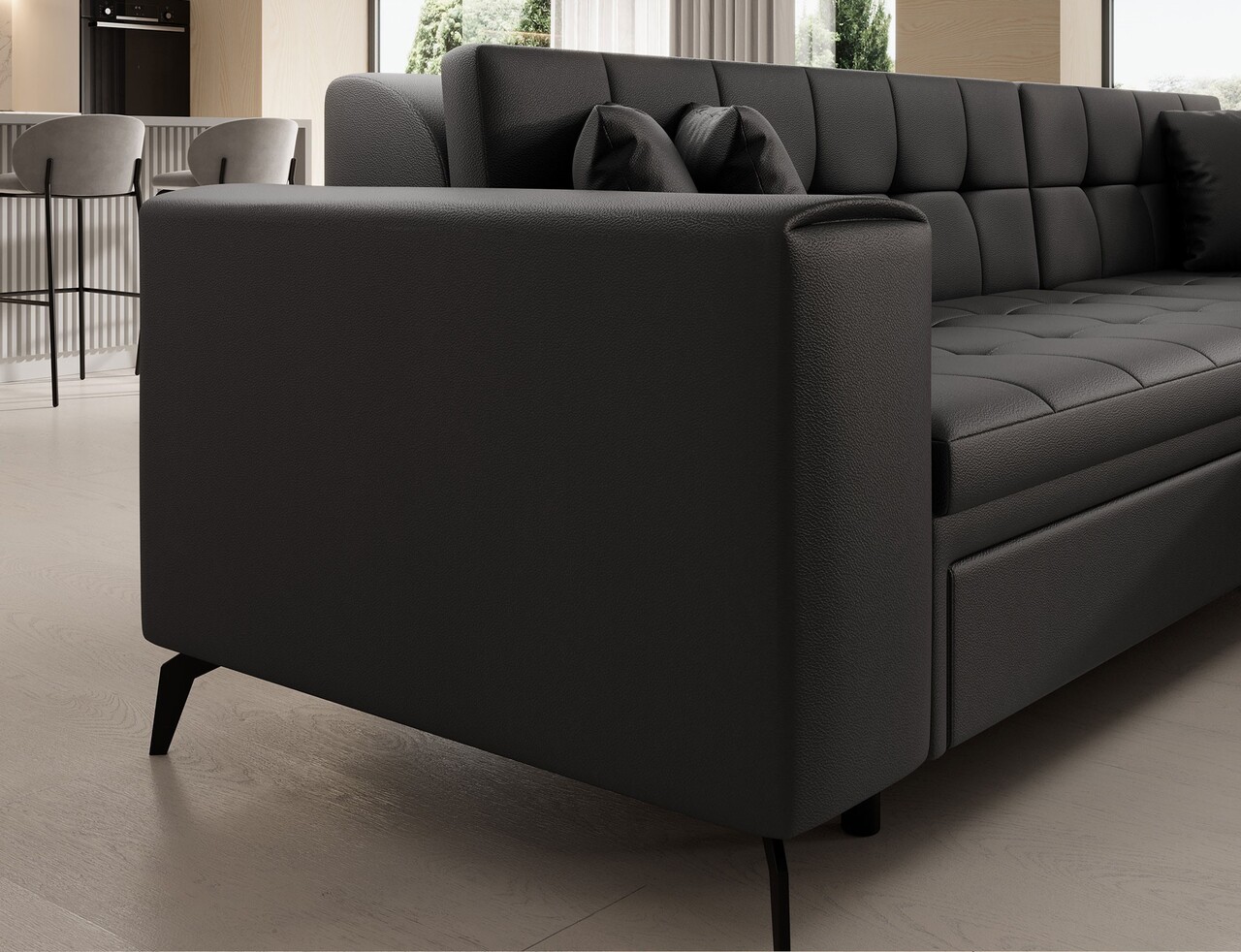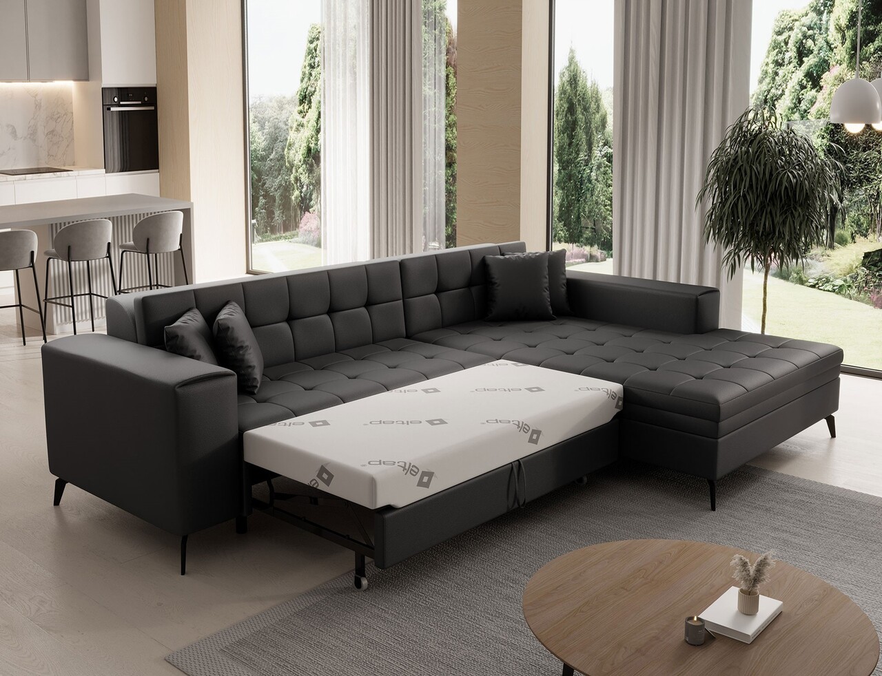 Coltar extensibil dreapta 4 locuri ELTAP, Sol-26, Solange, 292x196x84 cm, lemn/poliester, negru