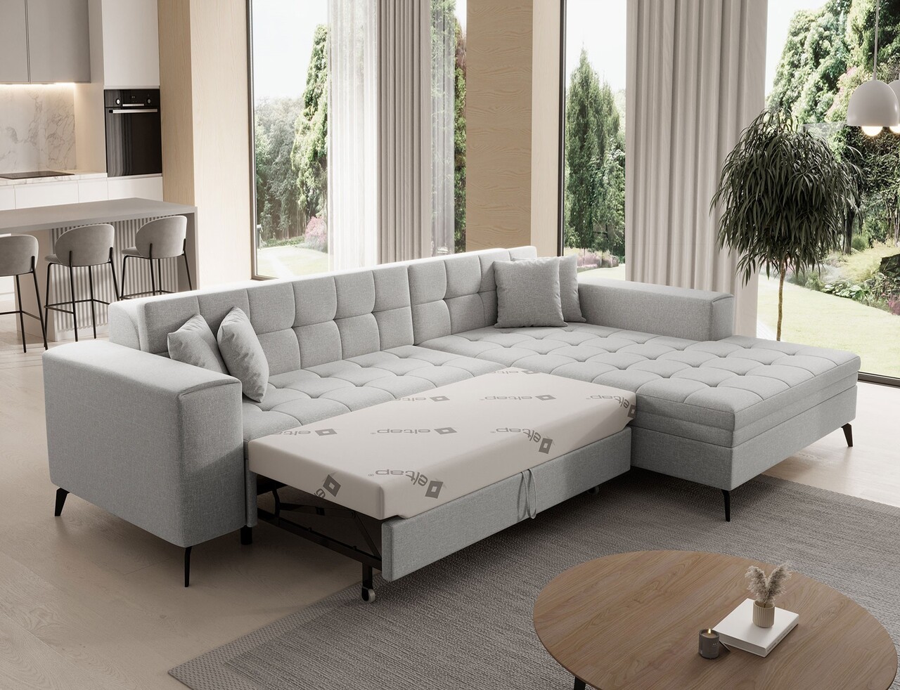 Coltar extensibil dreapta 4 locuri ELTAP, Sol-28, Solange, 292x196x84 cm, lemn/poliester, gri deschis