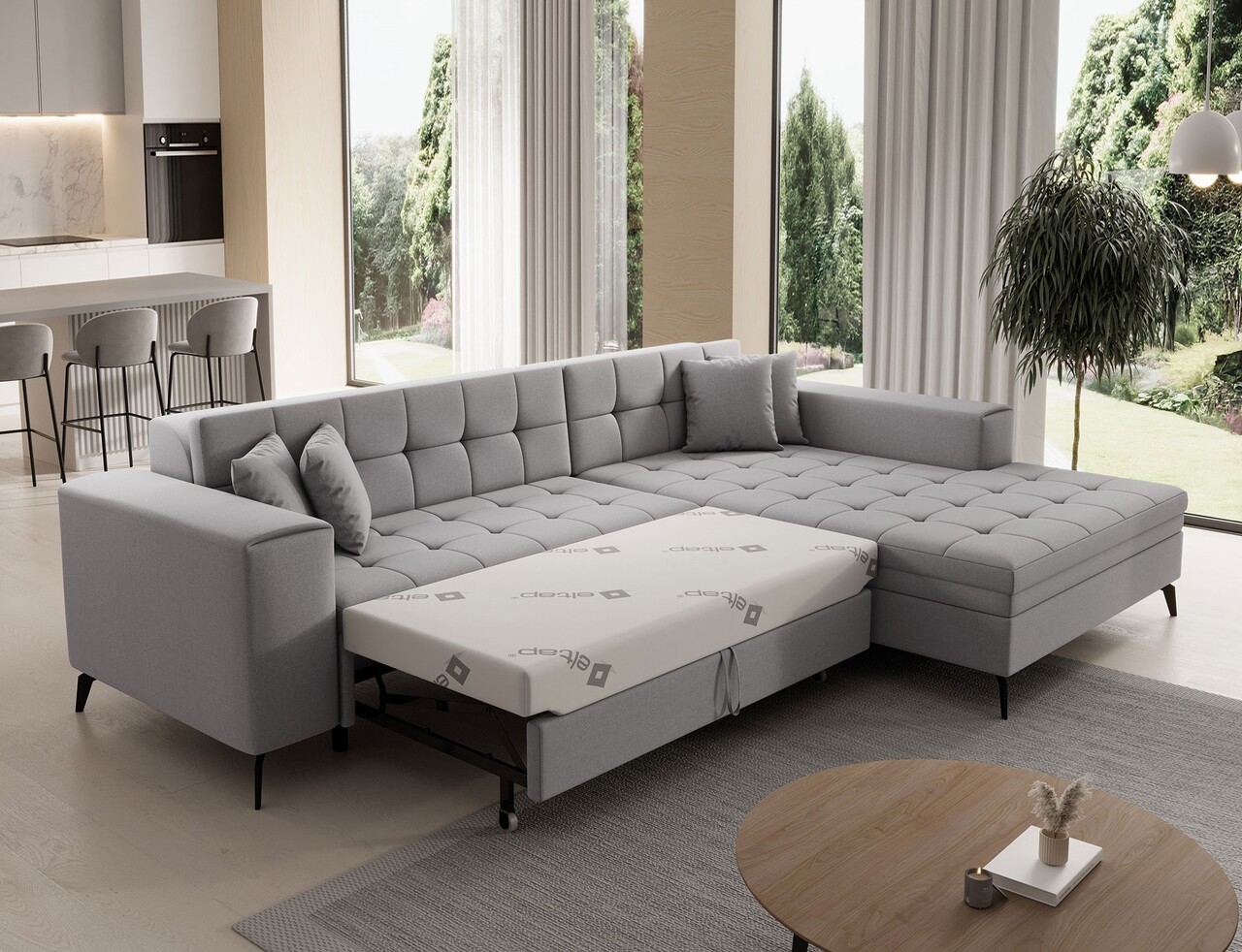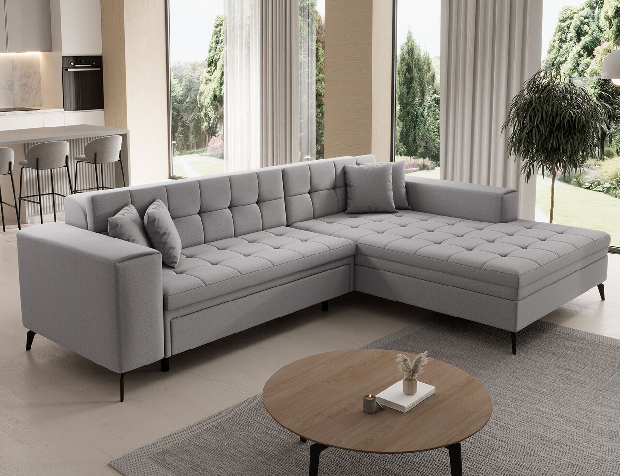 Coltar extensibil dreapta 4 locuri ELTAP, Sol-30, Solange, 292x196x84 cm, lemn/poliester, gri deschis