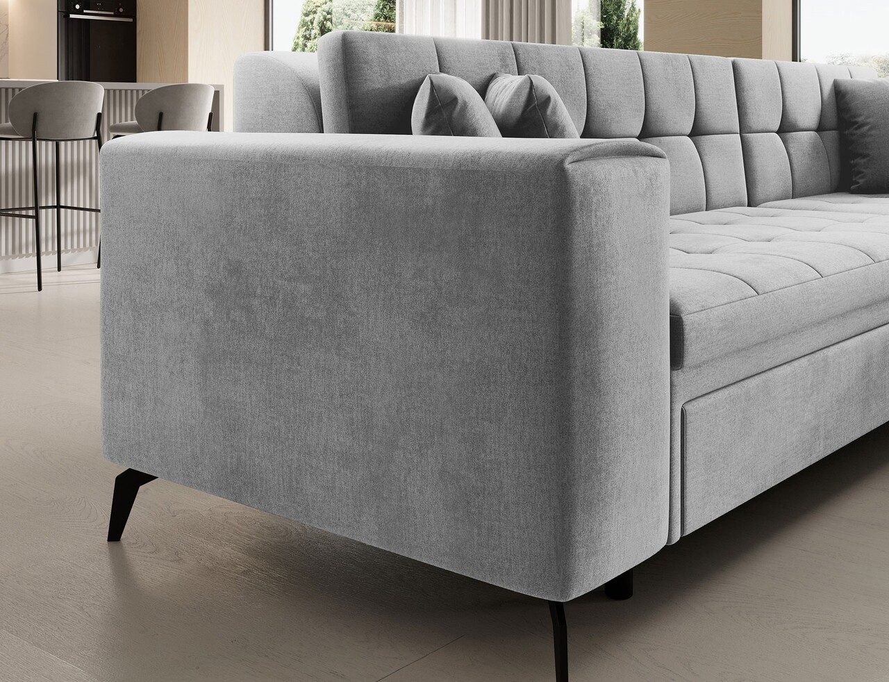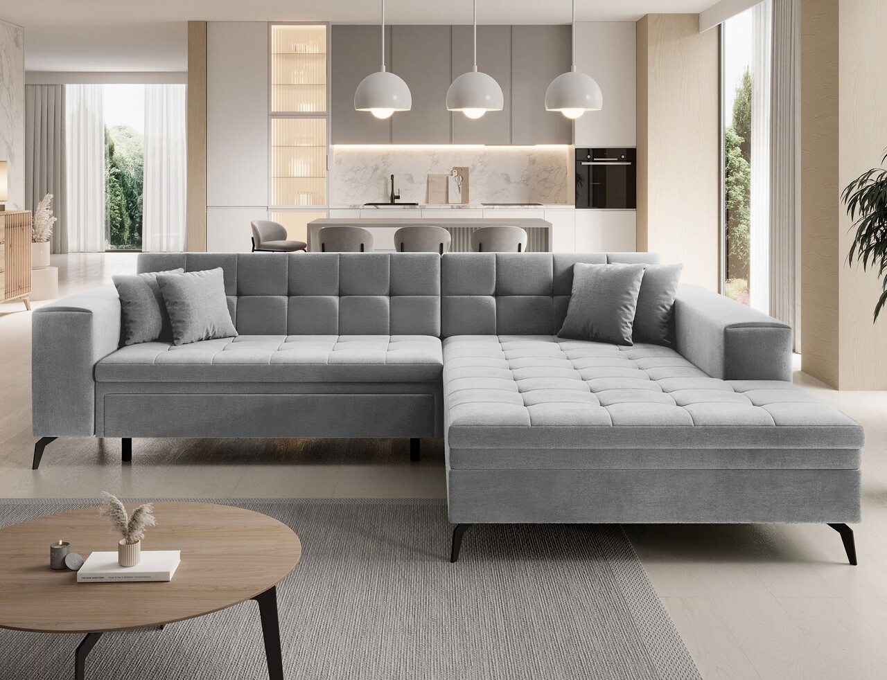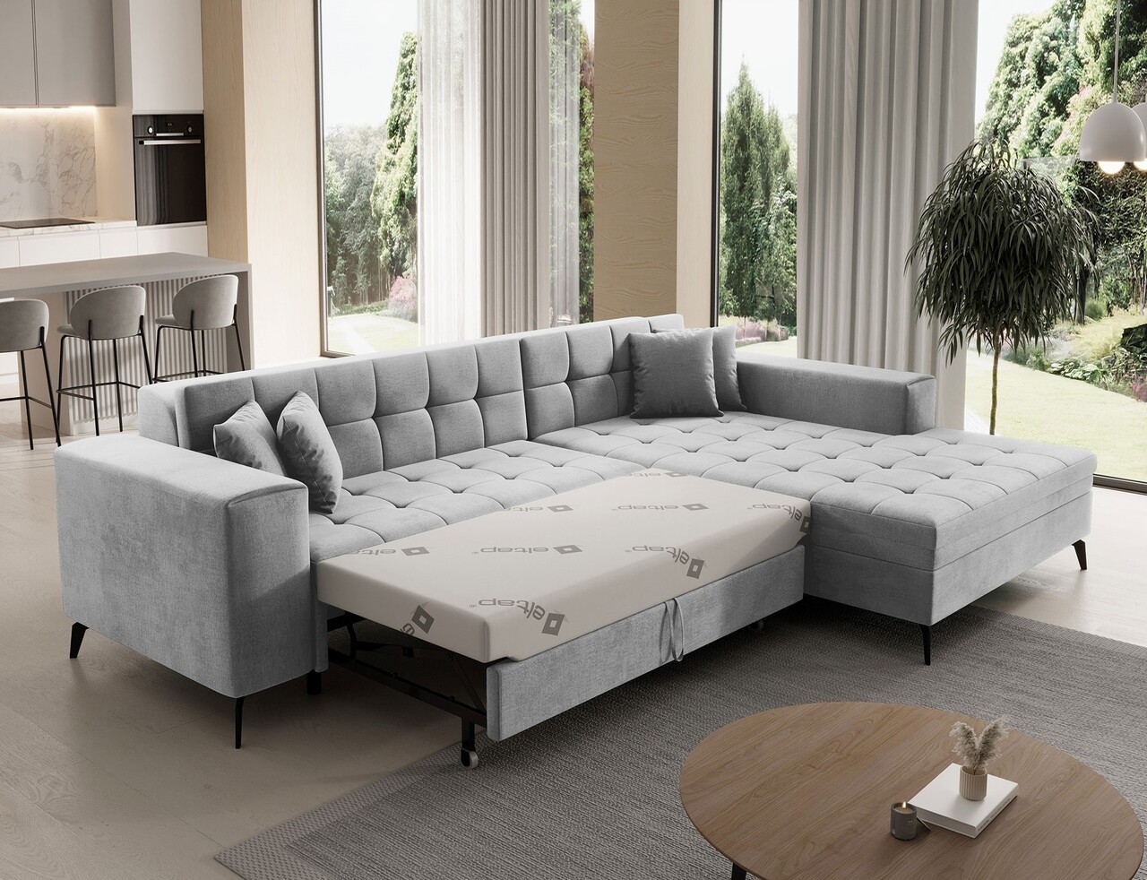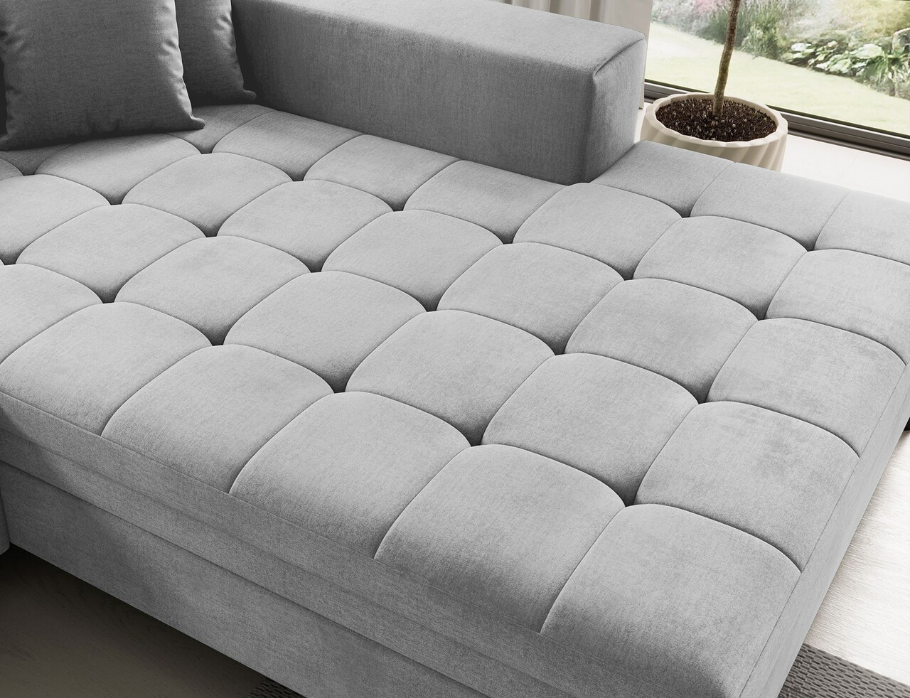 Coltar extensibil dreapta 4 locuri ELTAP, Sol-41, Solange, 292x196x84 cm, lemn/poliester, gri deschis